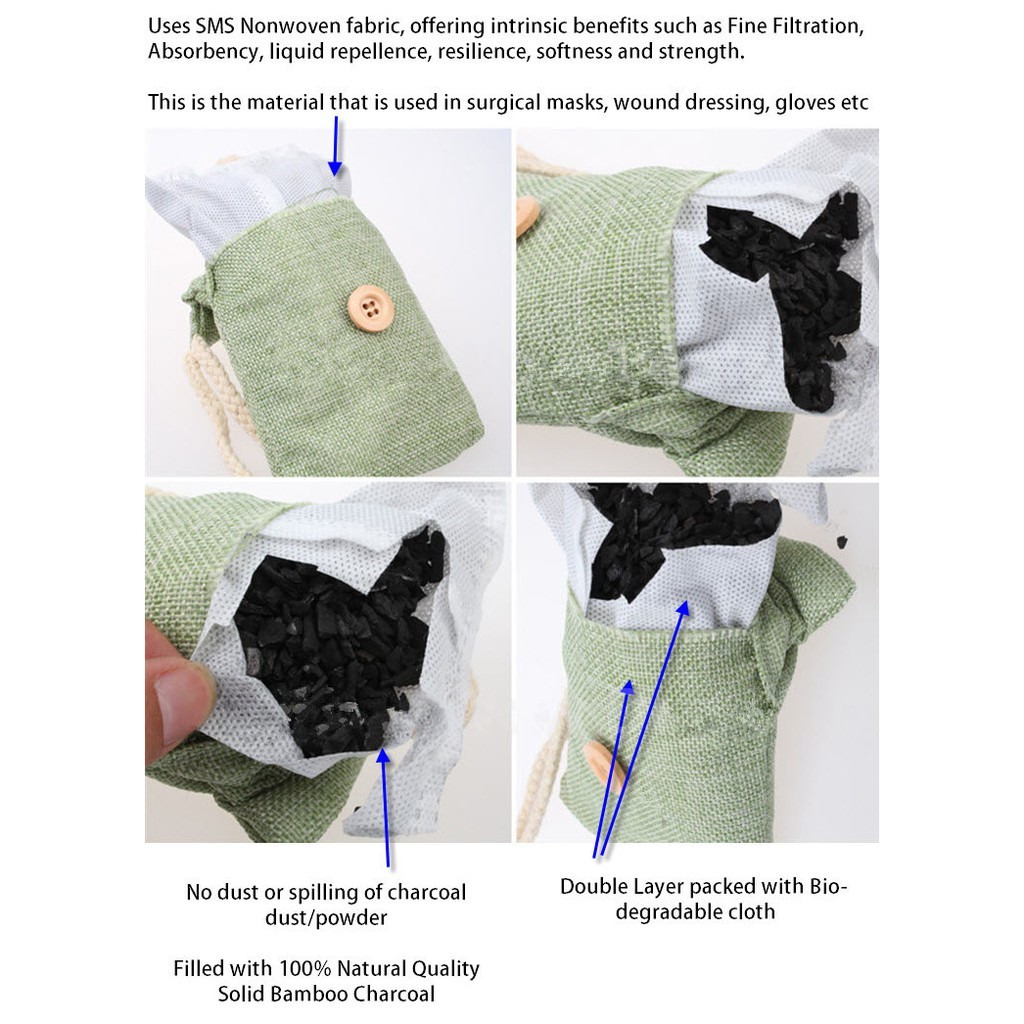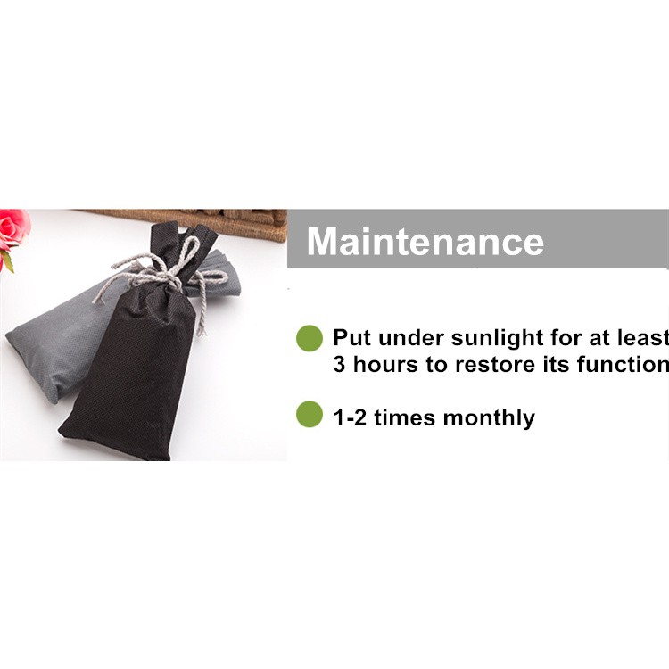 • ✔ Coverage: Amount of bamboo charcoal required will depend on the level of pollution moisture. Size of cabinet/wardrobe can affect of bamboo charcoal required.