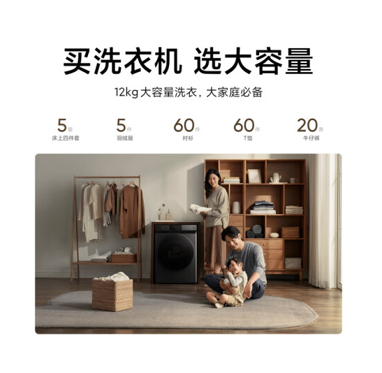 米家小米米家滚筒洗衣机全自动 12公斤超大容量洗烘一体 微蒸空气洗除菌直驱电机节能 XHQG120MJ202