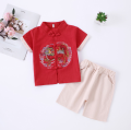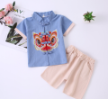 (2-pc Set) Baby Kids Boys Cheongsam Set Dancing Lion Chinese Character Fu Kirin Dragon Koi Top and Shorts CNY Chinese New Year Outfit|,|