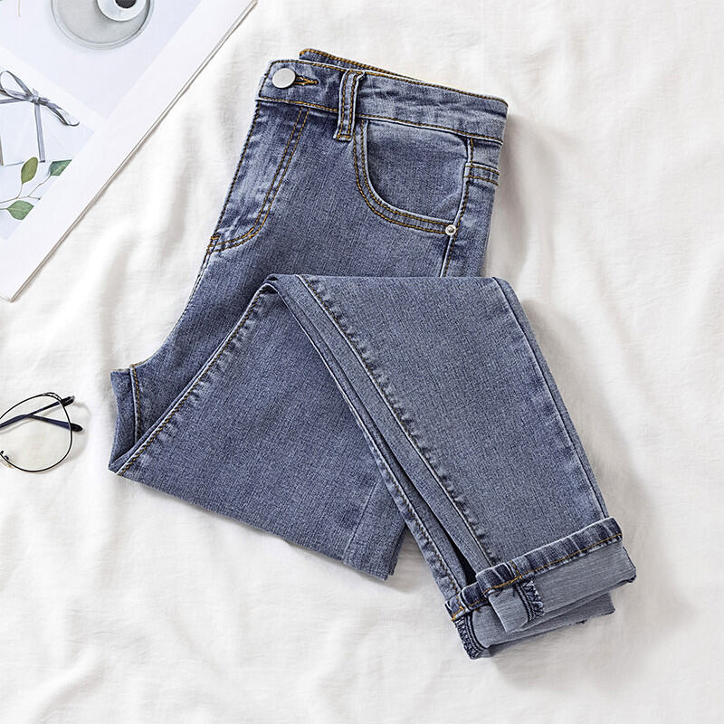 Jeans Female Korean High Waist All-Matching Skinny Slimming L Elastic New Tappered Pencil Women's Jeans Tide