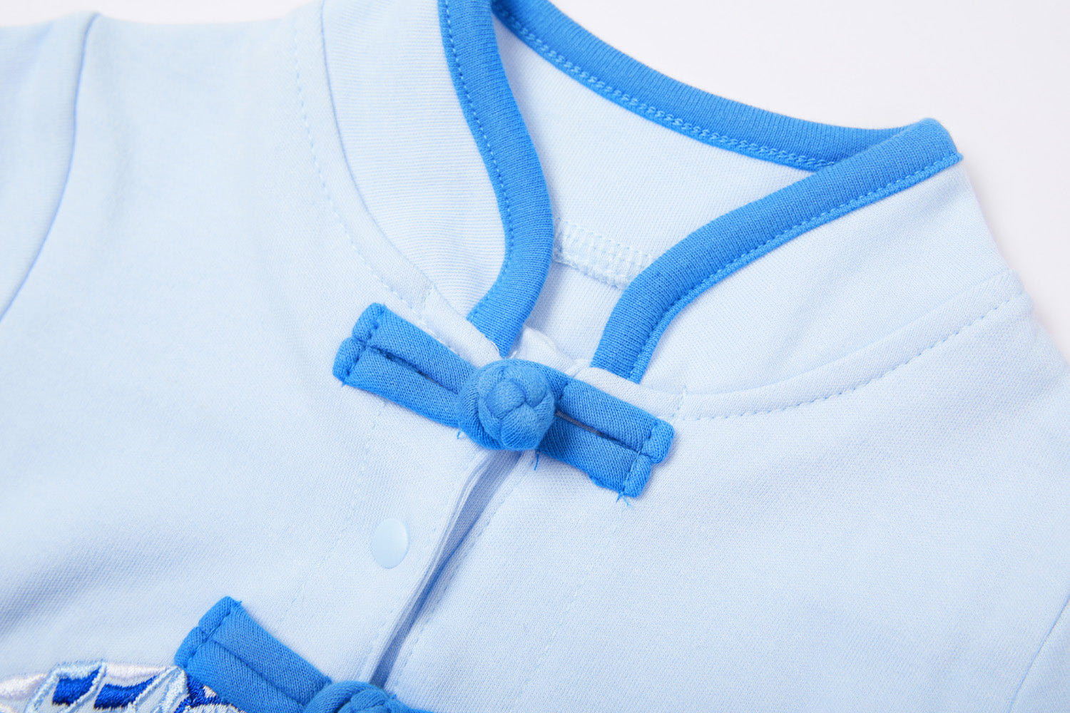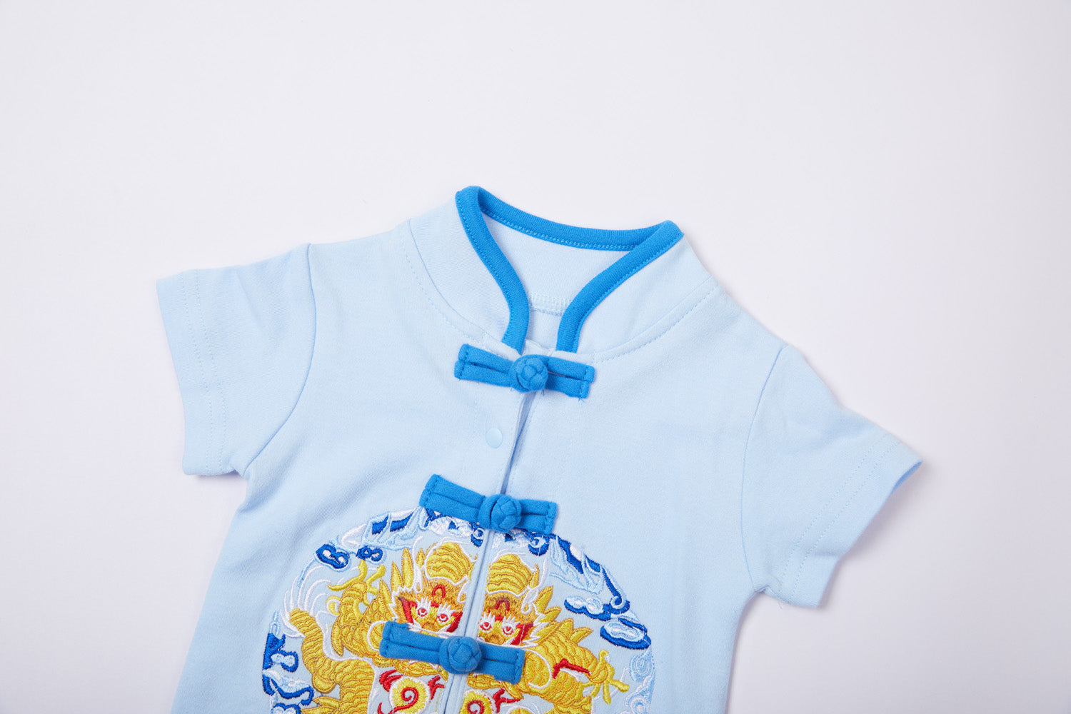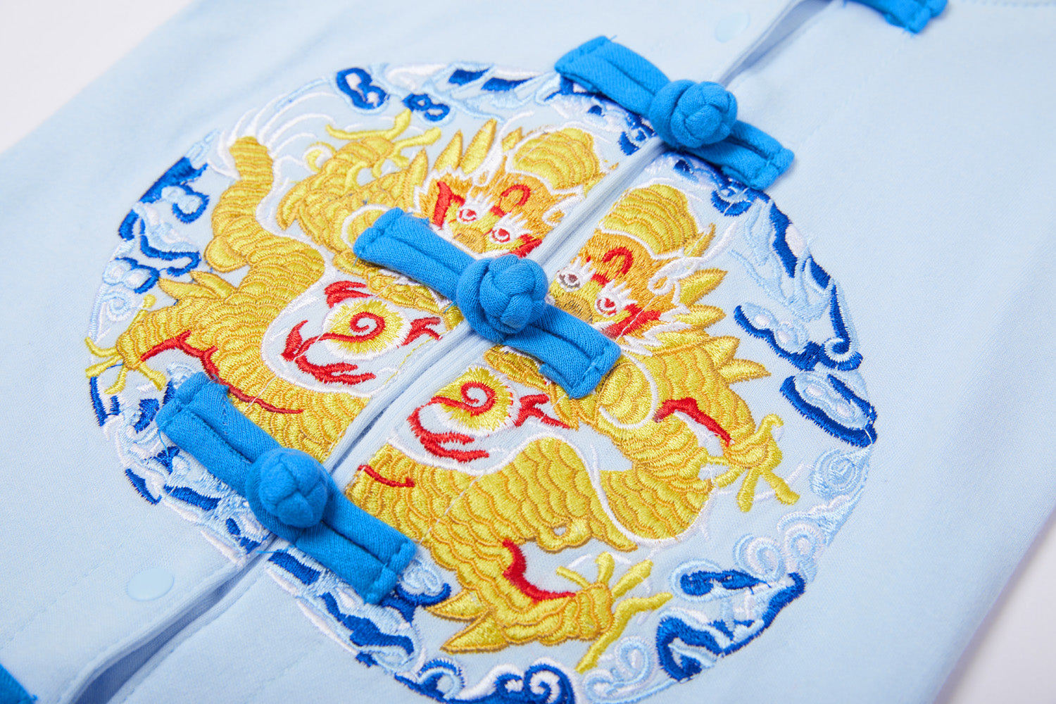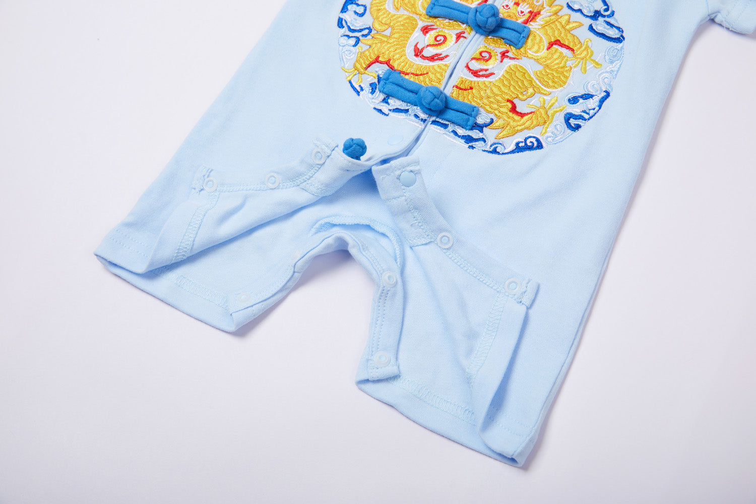 Baby Light Blue Cheongsam Romper Blue Auspicious Clouds Gold Dragon Chinese New Year Costumes CNY Clothes|,|