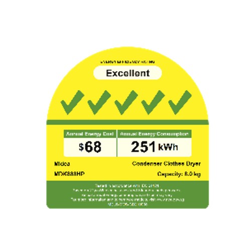 [Bulky] Midea MDK888HP White Heat Pump Dryer, 8kg, Energy Rating 5 Ticks|,|