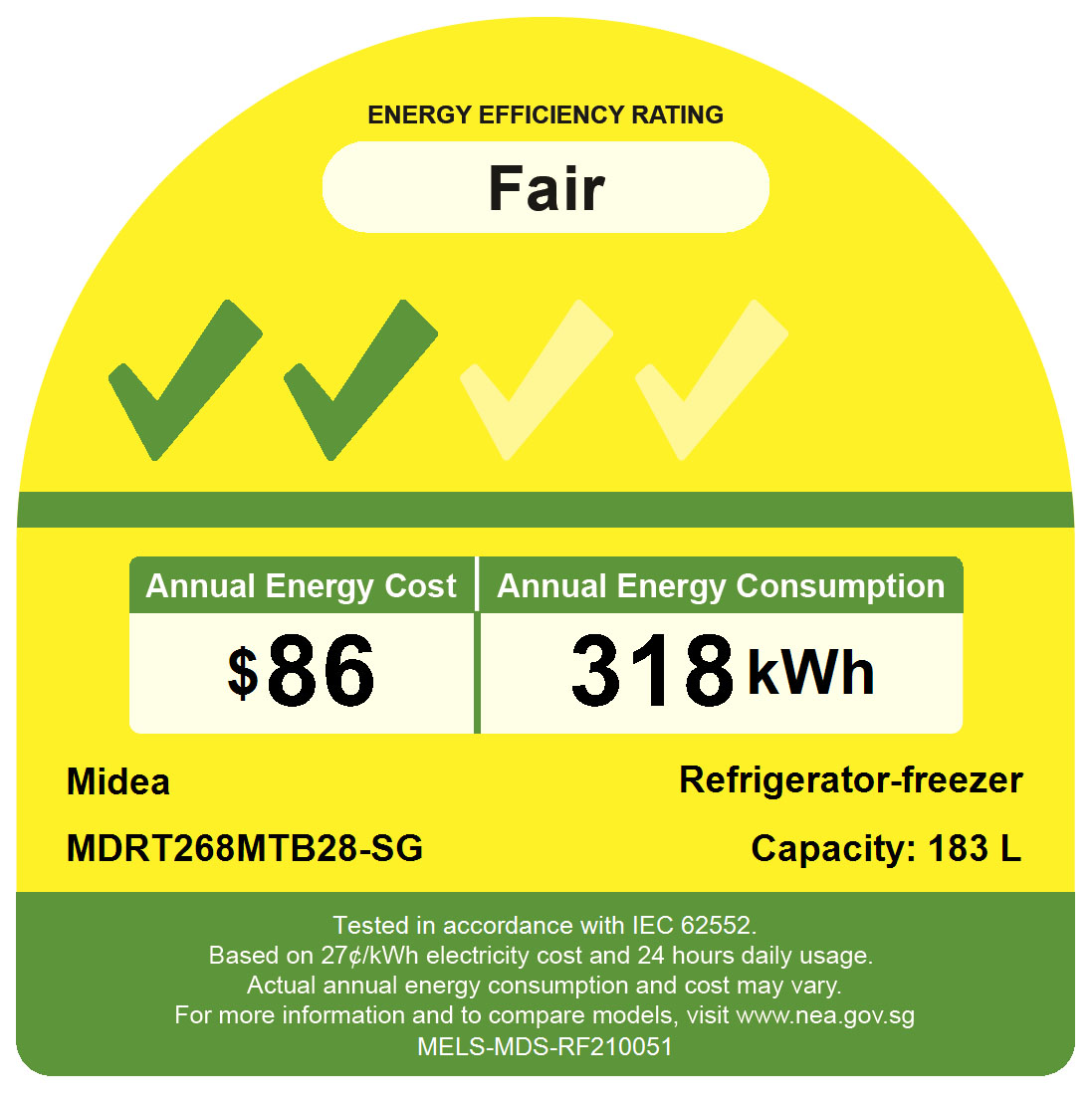 [Bulky] Midea MDRT268MTB28-SG Black Top Mounted Fridge, 183L, Energy Rating 2 Ticks|,|