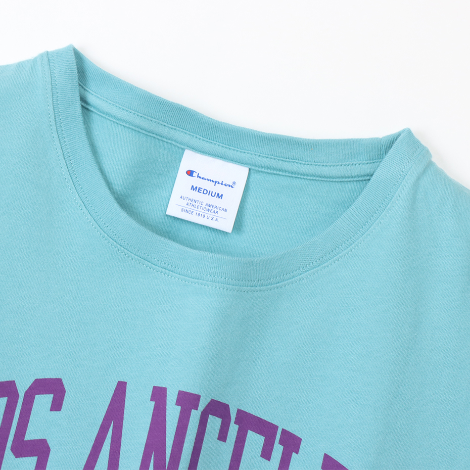 This short-sleeve T-shirt is made from 100% eco-friendly, sustainable American cotton "Cotton USA" and is soft and comfortable to the touch. Relaxed fit with plenty of body width and shoulder width. In the history of the Champion brand, it is an item that has been used and supported by many colleges and teams in the modern era. Graphics using college-style fonts that are highly compatible with champions are expressed with soaked prints and rubber prints.