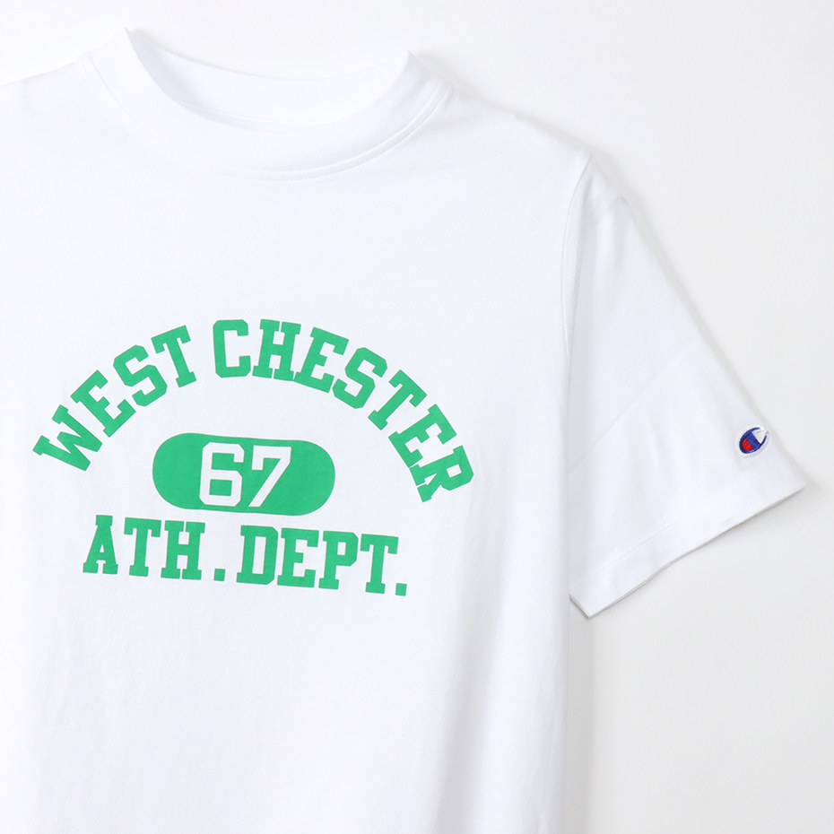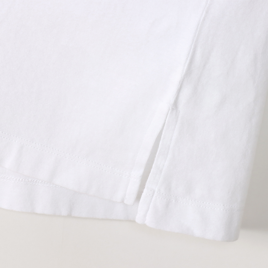 A dry and comfortable short-sleeve T-shirt made from 100% sustainable American cotton "Cotton USA" produced with consideration for the environment. Slits on both sides of the hem. A graphic image of an American city name or college emblem is printed on the front body in a different color for each body color. Due to the product washing process, it has a familiar texture from the beginning of wearing and is difficult to shrink after washing.