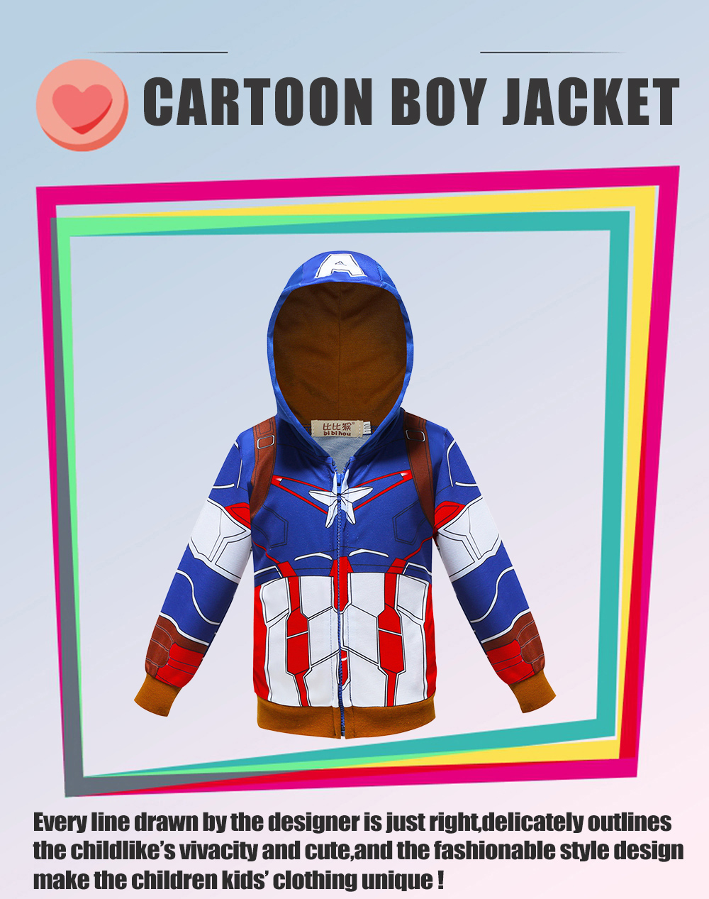 Material: Cotton Pattern: Marvel Superhero Captain America Fit for: 1 to 8 years old kid Size: 100-150 Sleeve: Long Sleeve Package Included: 1*Kid Jacket