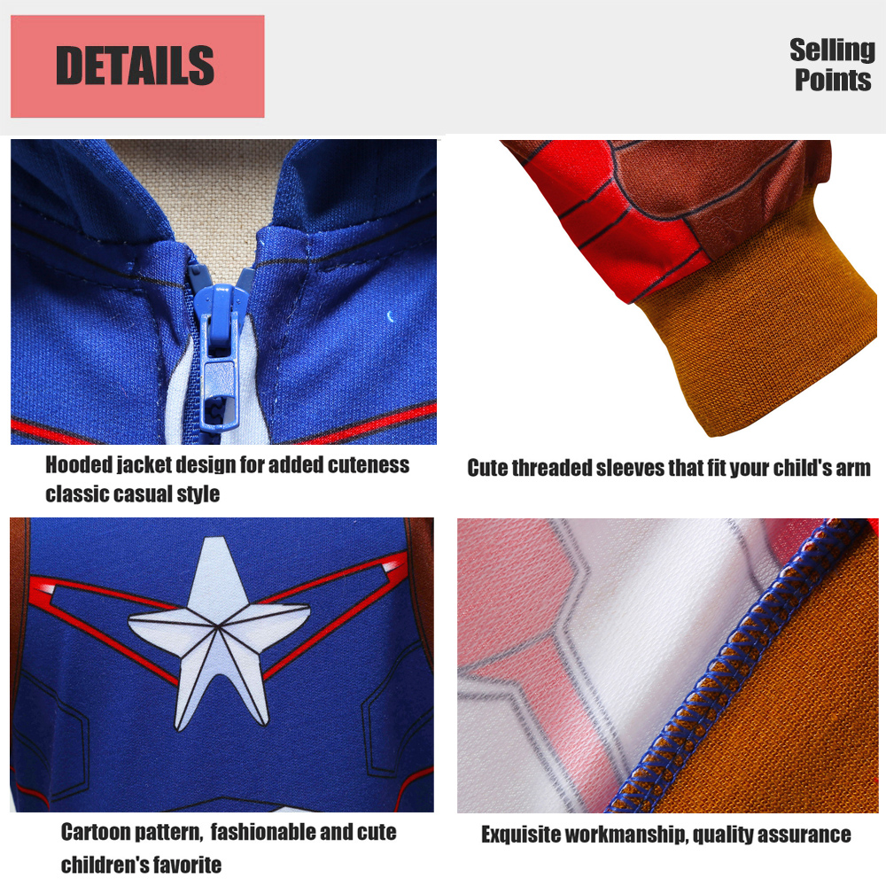 Children Boy Jacket Coat Kids Clothing Marvel Superhero Captain America Long Sleeve Hooded Sweater Coats 2023 Kid Fashion Jacket, Youth Children Trend. Stylish and fashion design make your baby more attractive Good Material and first class workmanship. Loose and comfortable Daily Wear ,School, Birthday,Party Costume, Best Jacket for Your Kid