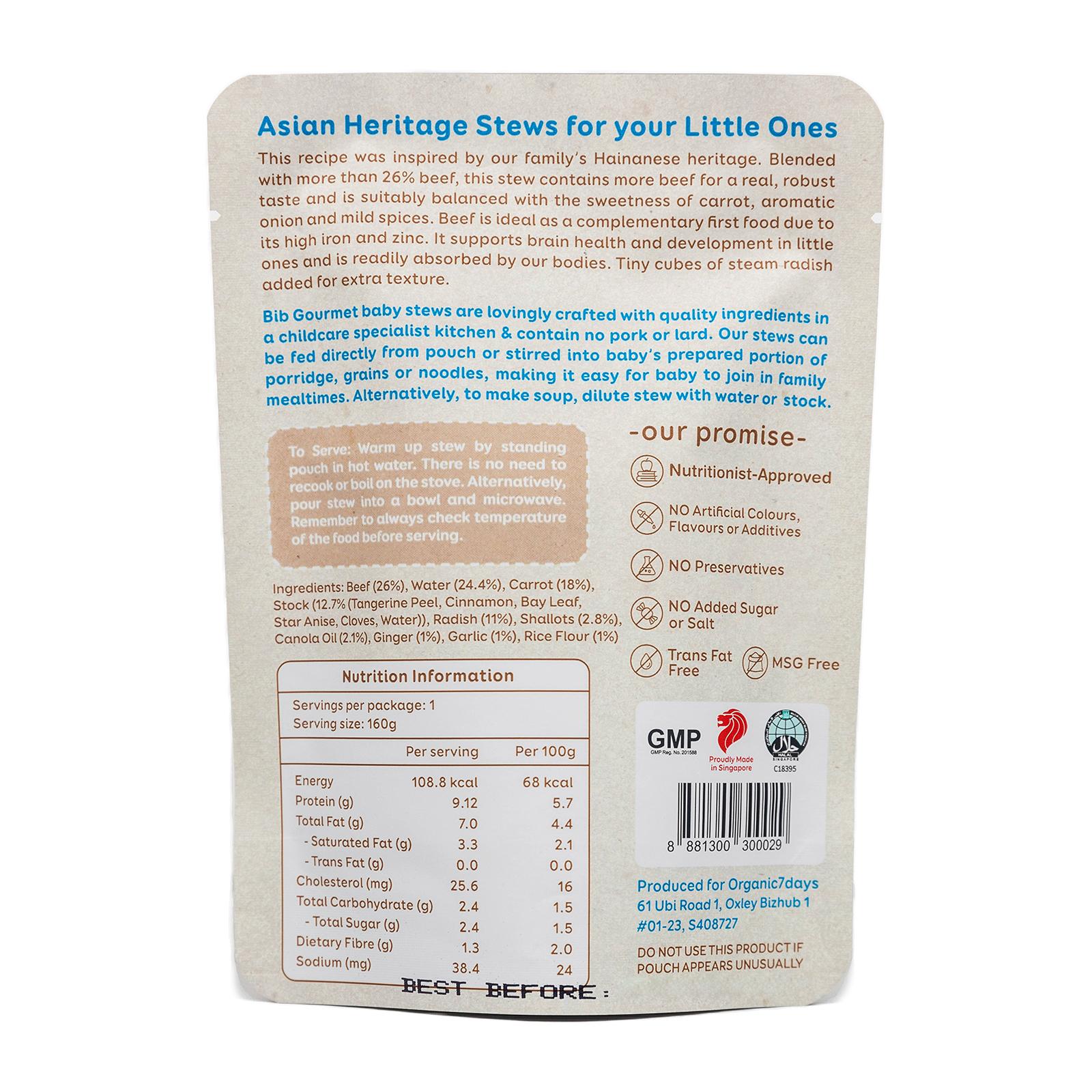 Bib Gourmet baby stews are lovingly crafted with quality ingredients in a childcare specialist kitchen & contain no pork or lard. Our stews can be fed directly from pouch or stirred into baby's prepared portion of porridge, grains or noodles, making it easy for baby to join in family mealtimes. Alternatively, to make soup, dilute stew with water or stock.