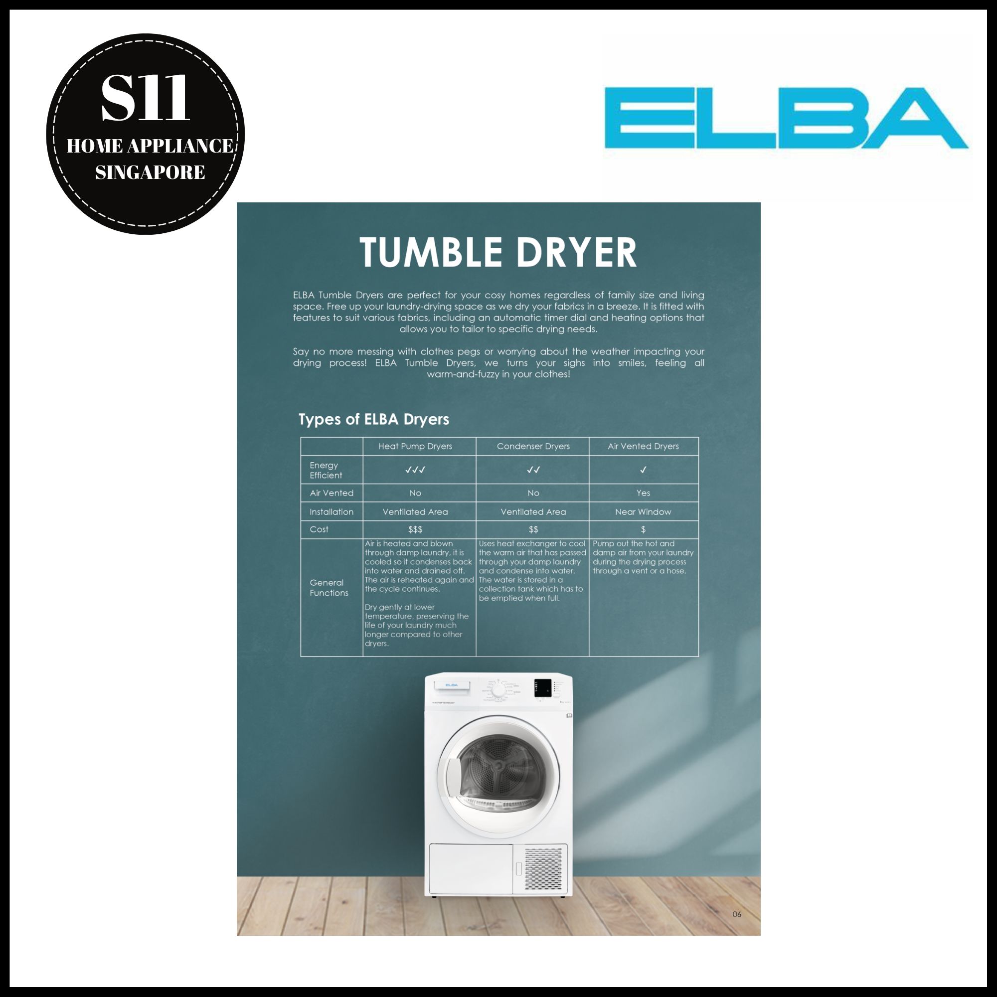 ELBA 7KG EBD 750 V AIR VENT DRYER * 2 YEARS LOCAL WARRANTY - FREE DELIVERY - FREE INSTALL AND DISPOSE|,|