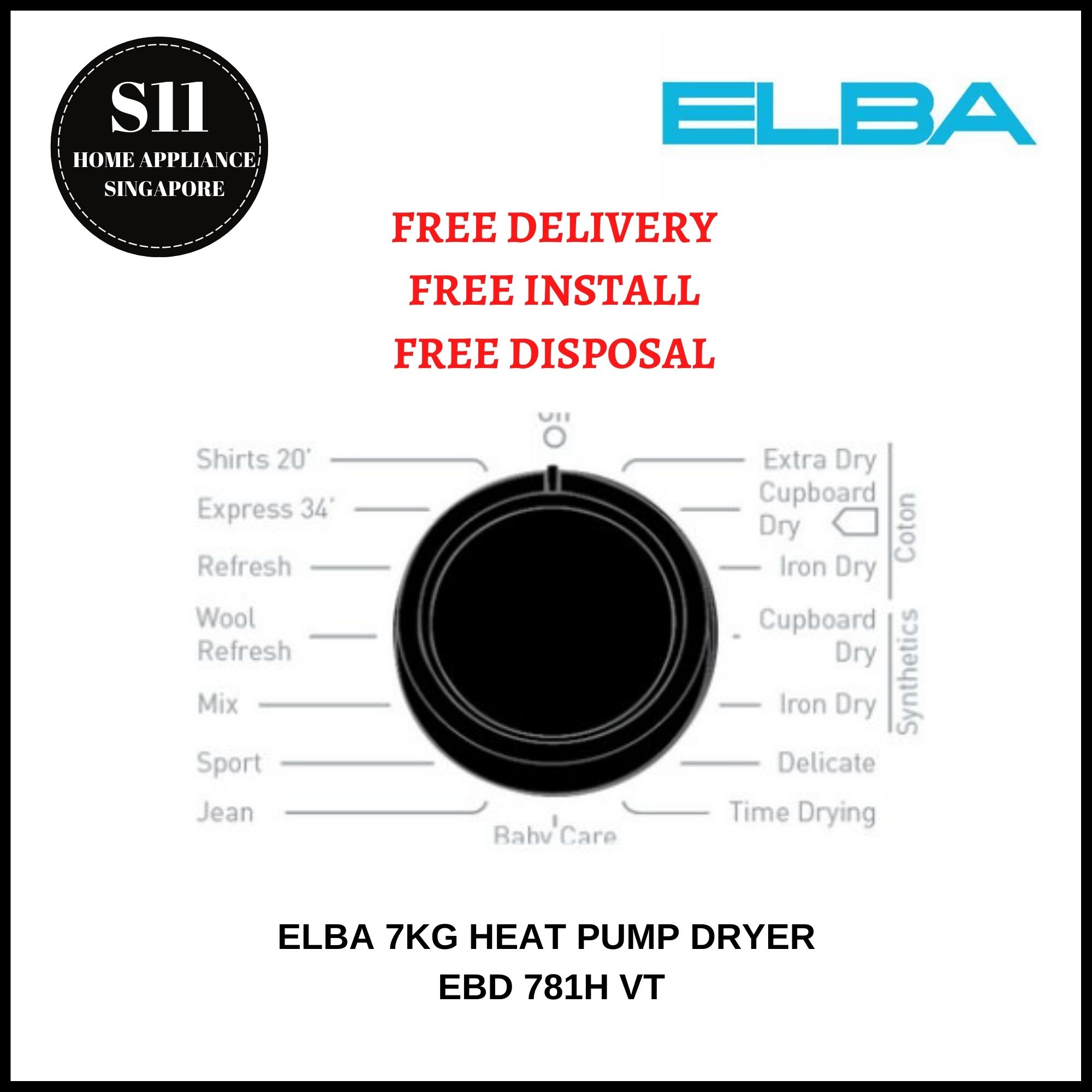 ELBA 7KG EBD 781H VT HEAT PUMP DRYER *MADE IN EUROPE* FREE INSTALL AND DISPOSE - 2 YEARS LOCAL WARRANTY * READY STOCKS|,|