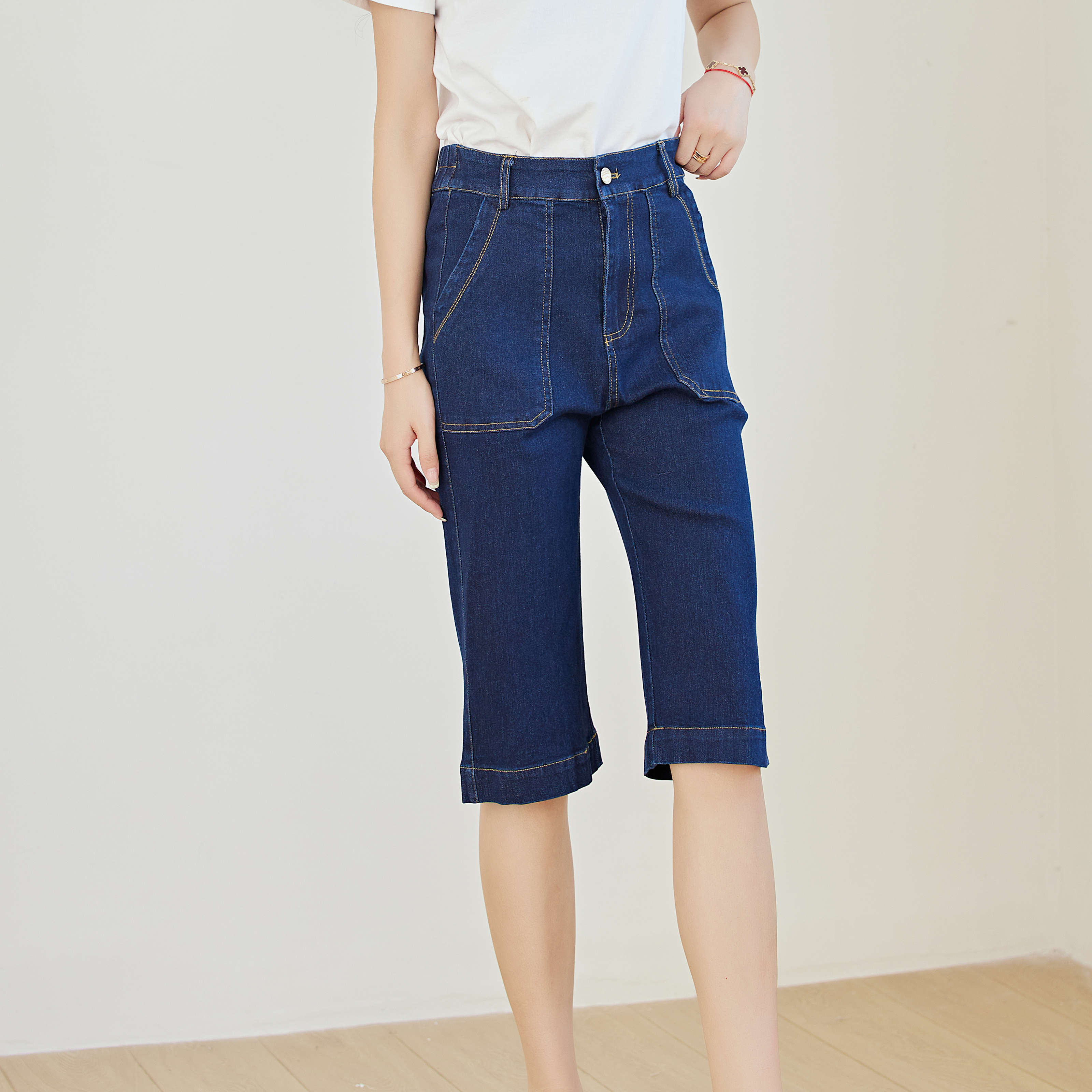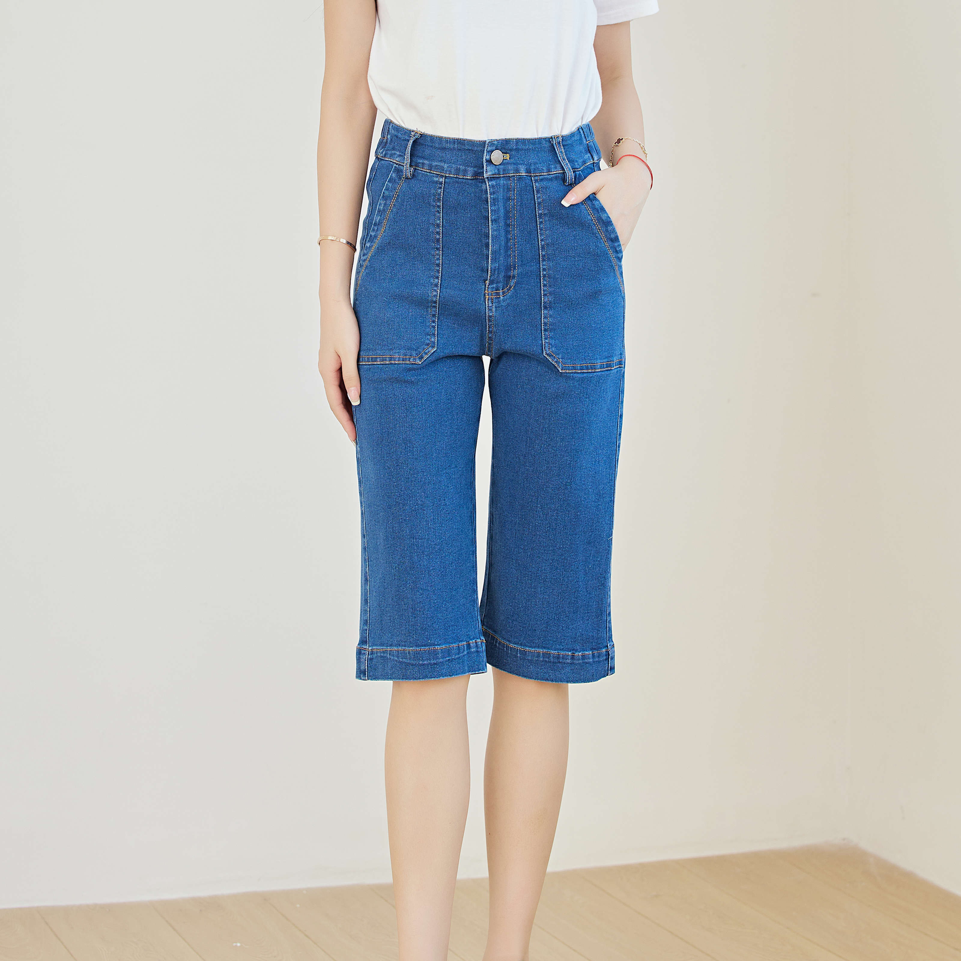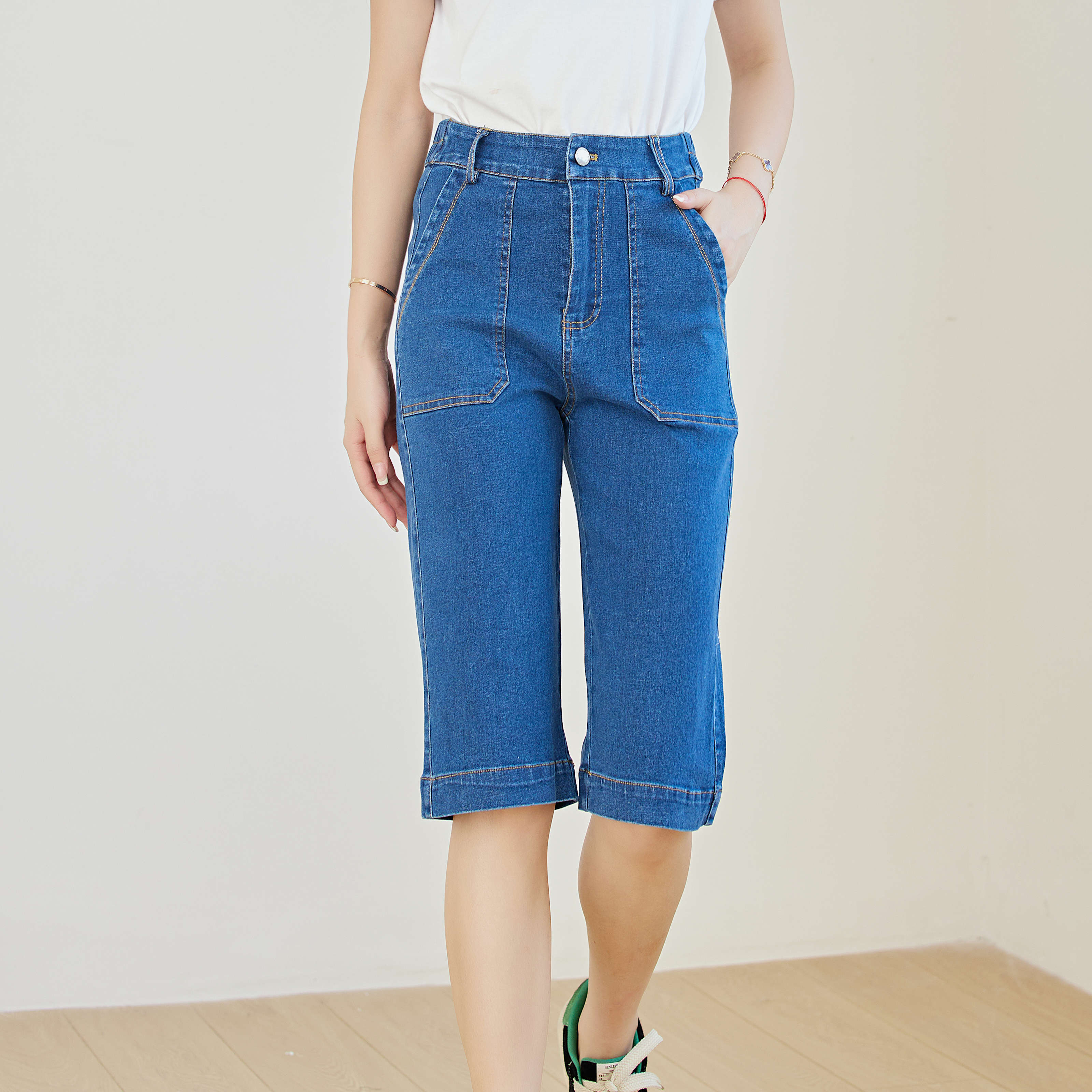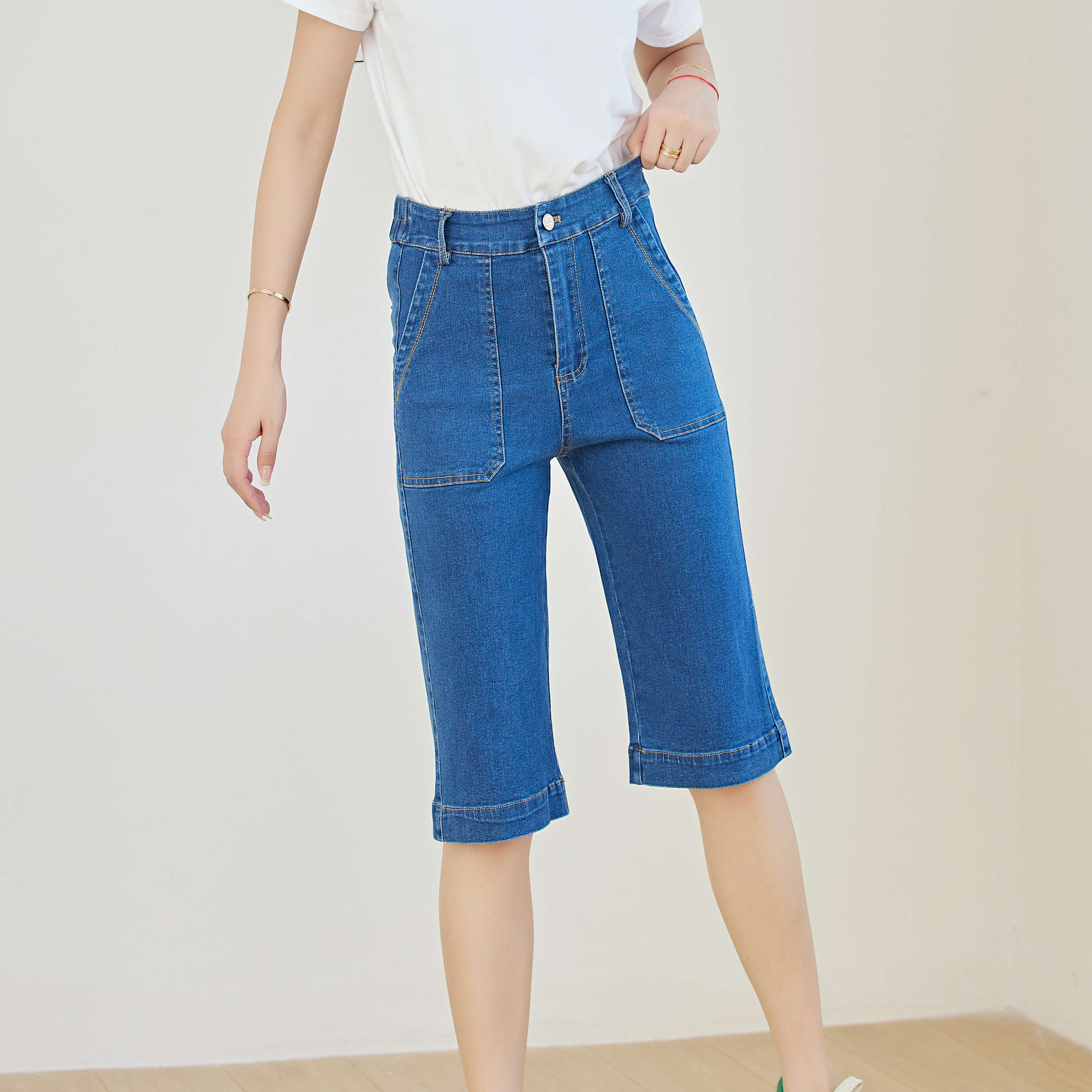 Eyouth 10126 women jeans high waist Straigth leg Knee length ladies denim pants|,|