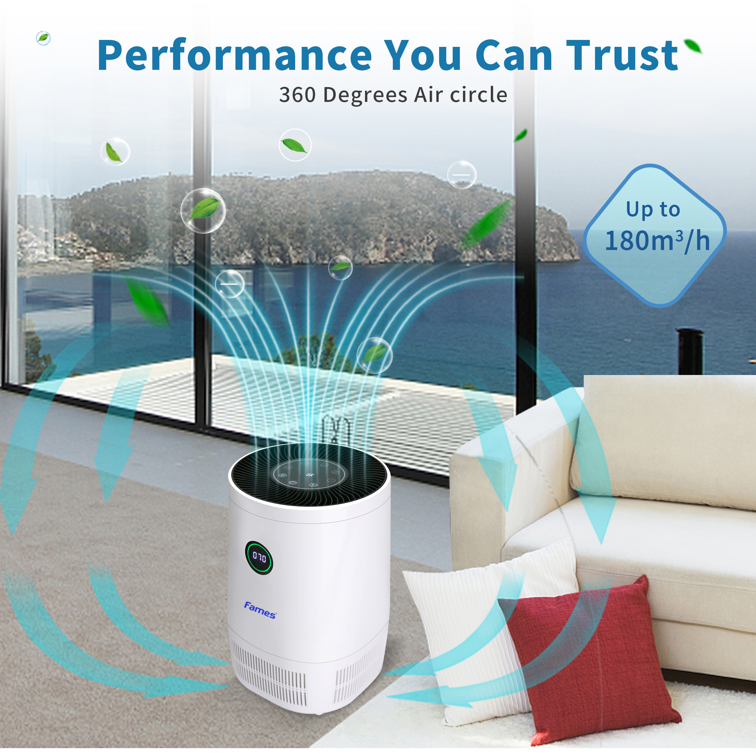 Effective purification nano-sized particles: Effectively captures 99.97% nano-sized particles as small as 0.003mm, including PM2.5 including pollen, dust, pet danger, dust mites, mold, and also bacteria and viruses.