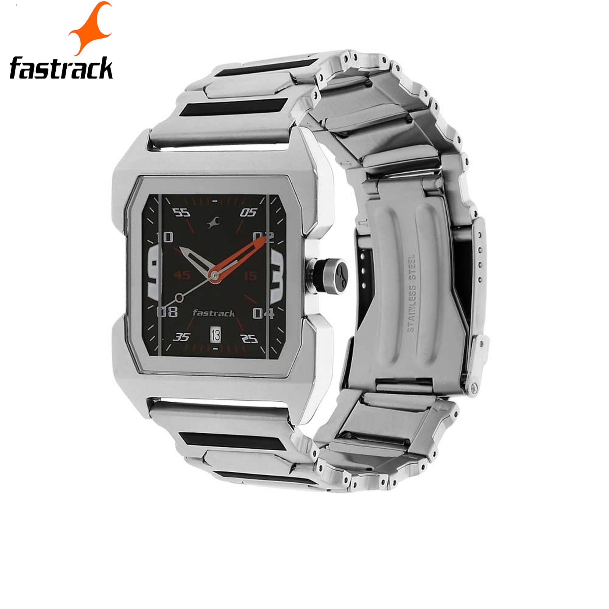 Fastrack Black Dial Silver Stainless Steel Strap Analog Watch For Men's 1474SM02|,|