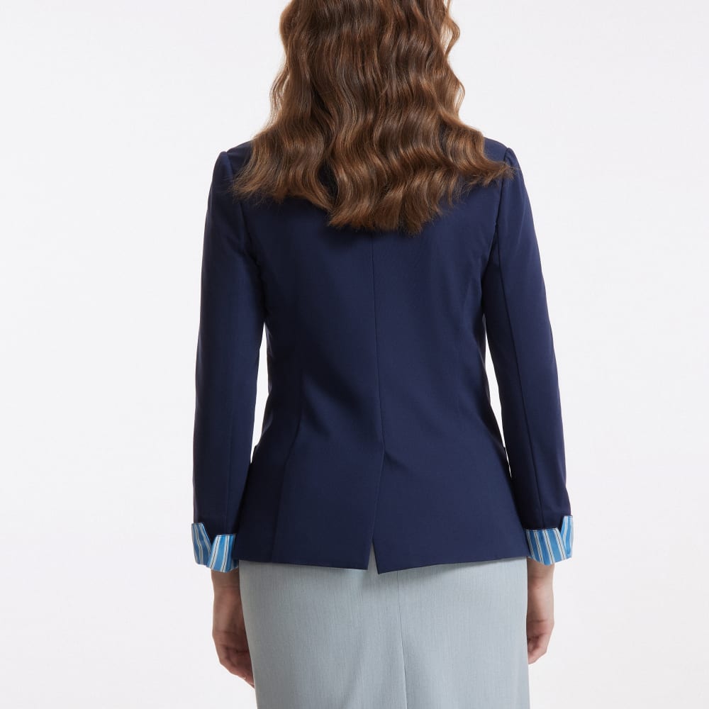 Sandra Multi Way Stretch Slim Fit Ponte Blazer in Regular Fit. Made with 42% Rayon 46% Nylon 12% Spandex.