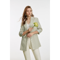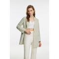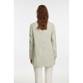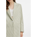 Boyfriend Fit Wide Stripe Blazer in Green. Made with 95% Polyester, 5% Spandex. Machine Wash.