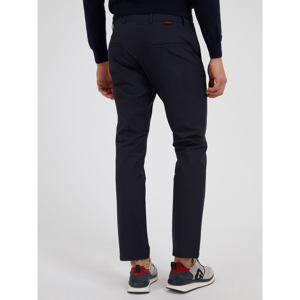 A pair of tech-stretch nylon trouser pants that are stylish and comfortable.