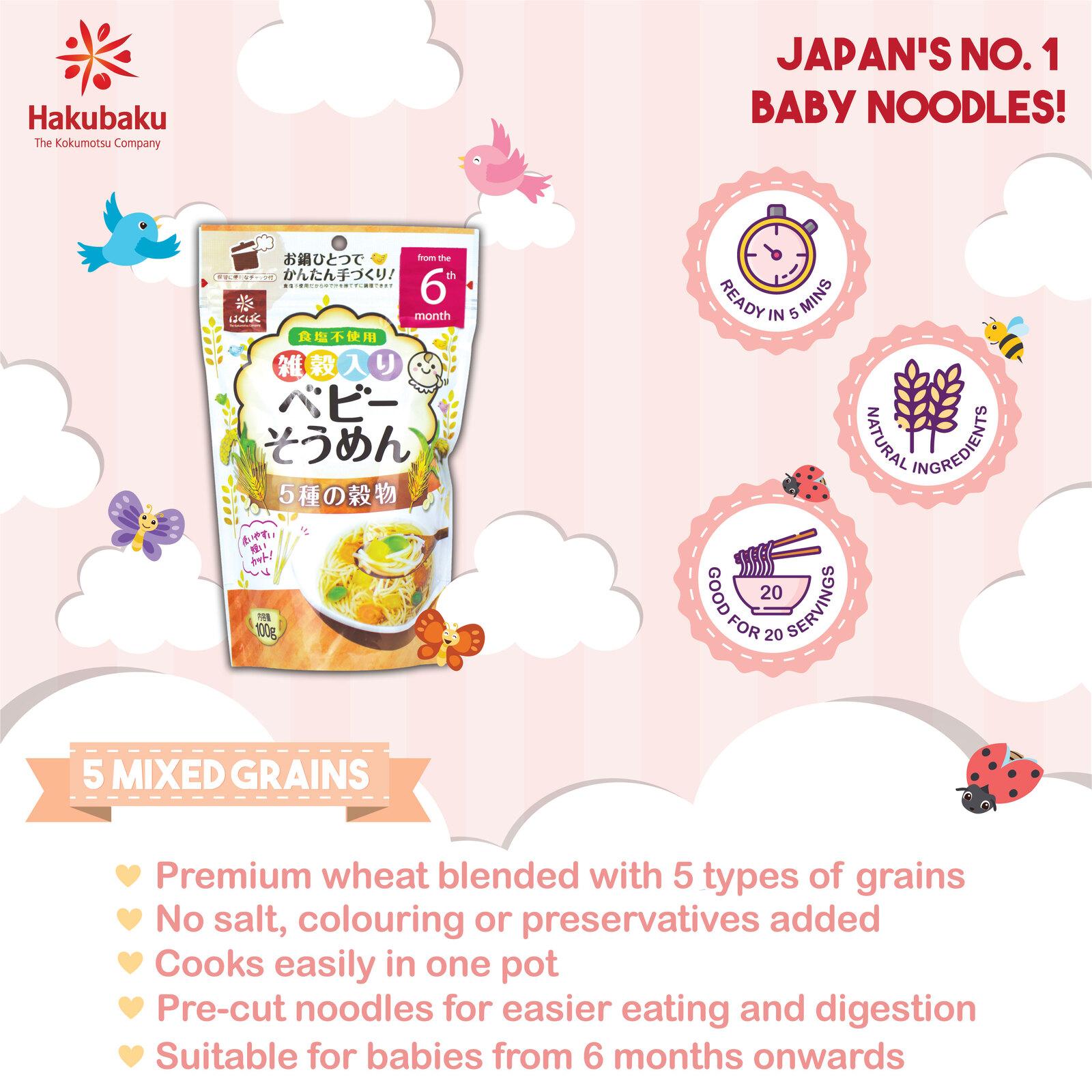 Hakubaku Baby Noodles 5 Mixed Grains 100G|,|