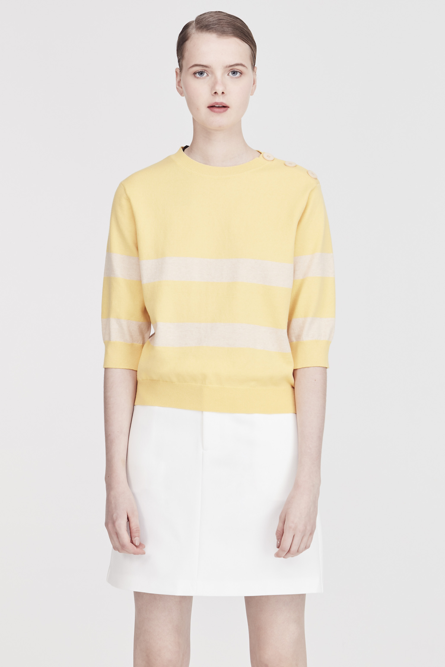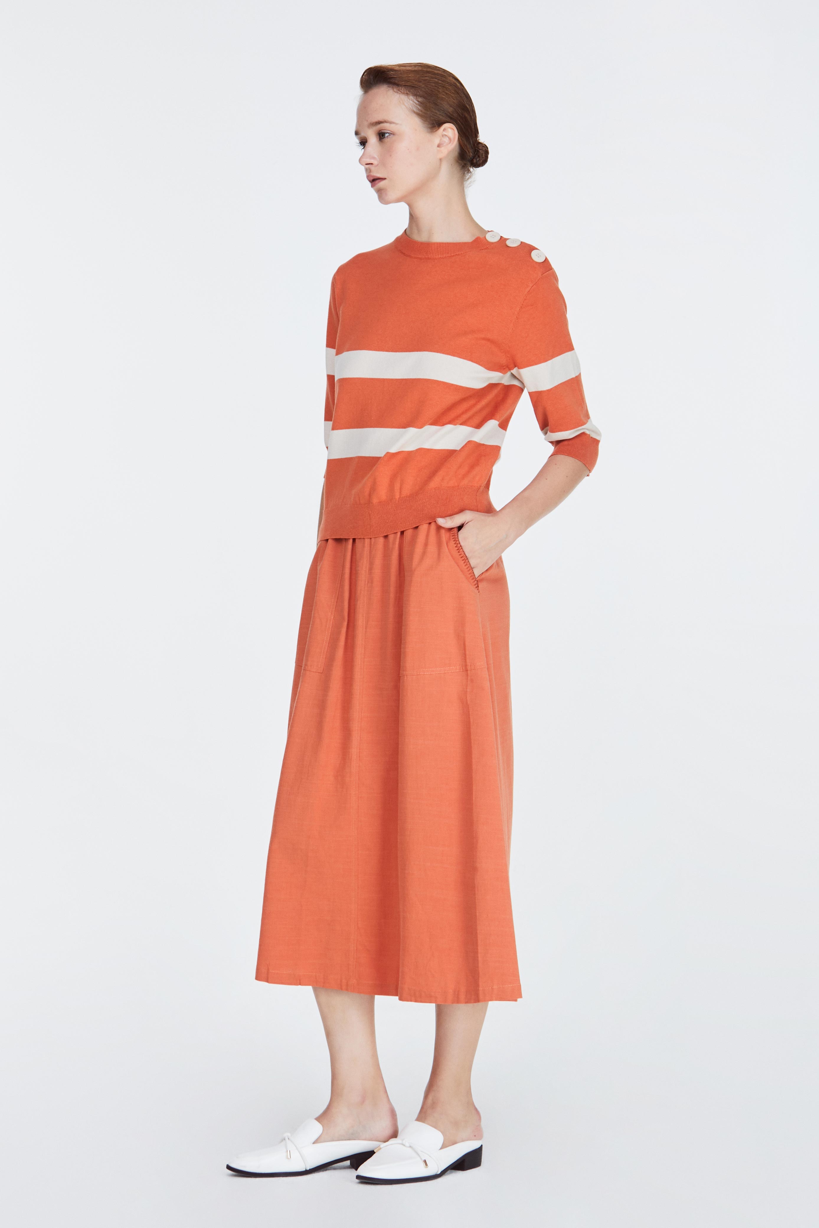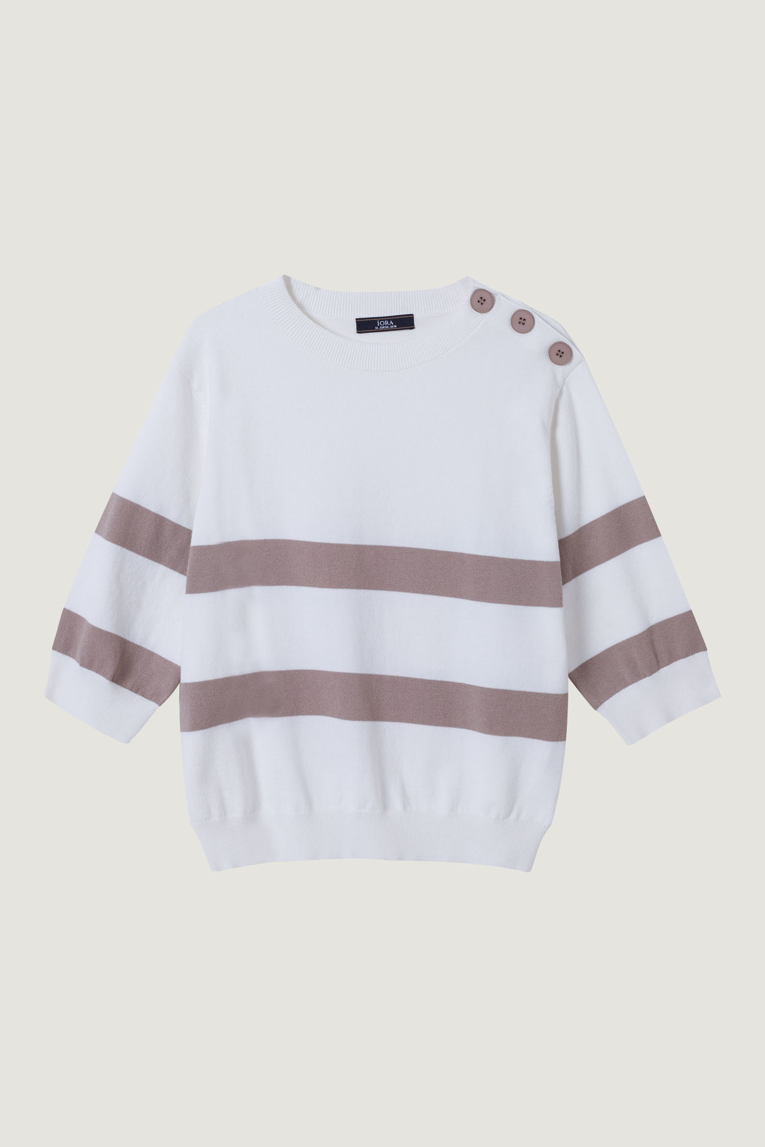 iORA Buttoned Shoulder Striped Sweater|,|