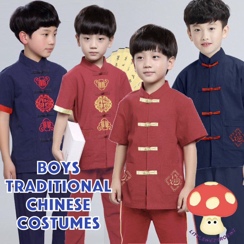 +LITTLE MUSHROOMS+ KIDS CHILDREN BOY CHINESE NEW YEAR TRADITIONAL COSTUME KUNGFU SUIT SET CNY RACIAL HARMONY COTTON 2023 NEW|,|