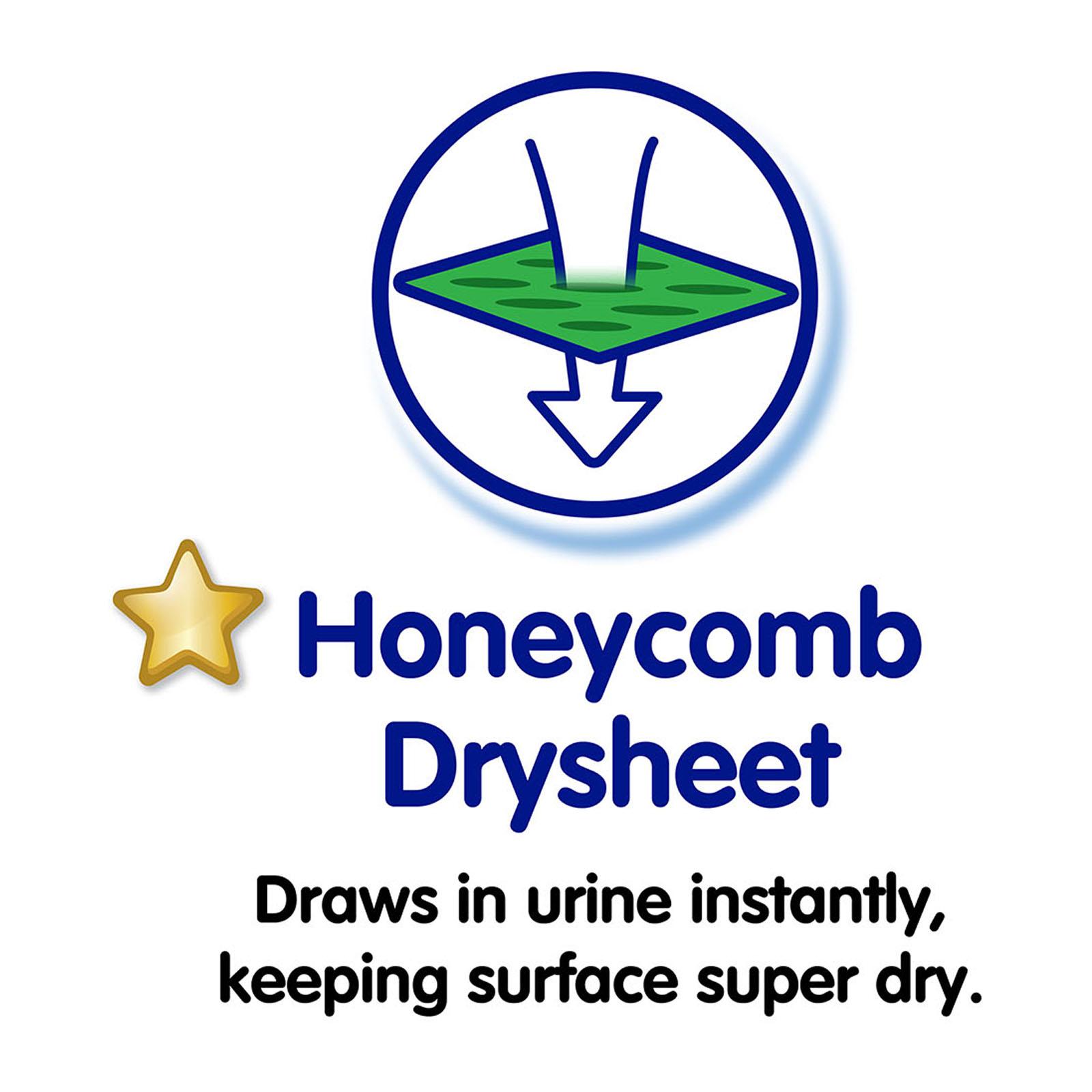 Top Sheet: Non Woven Polyolefin, Polyester; Absorbent Pad: Paper, Pulp, Polymer (35.6%); Back Sheet: Film Polyolefin; Tape: Polyolefin; Elastic: Polyurethane; Construction Styrene Elastomer Synthetic Resin.