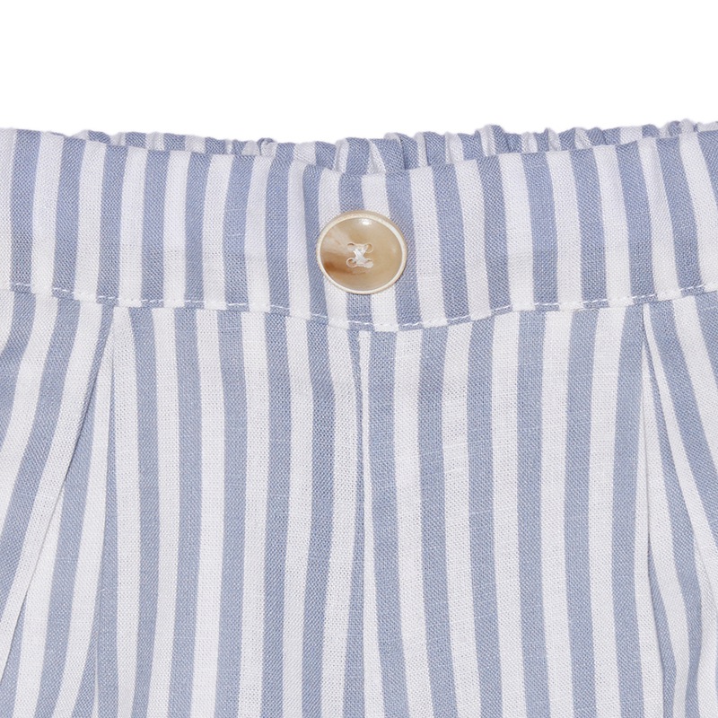 This striped pants feature a luxurious blue color. The elegant gold pearl fabric and embroidery adds a special touch, feeling soft against the skin.