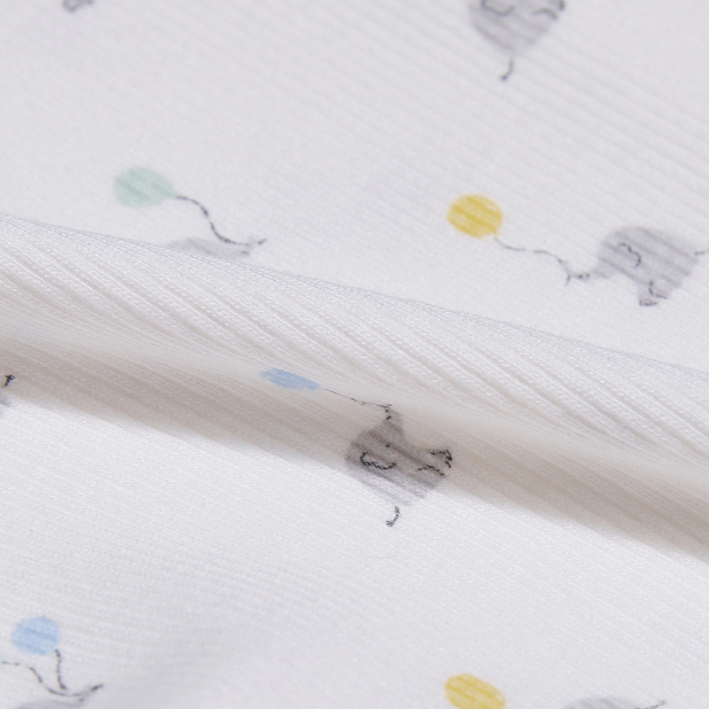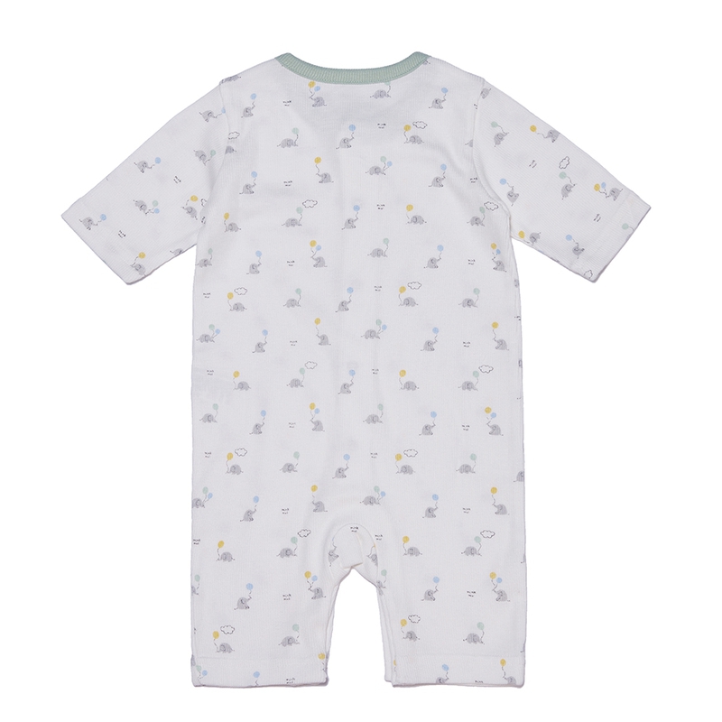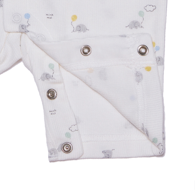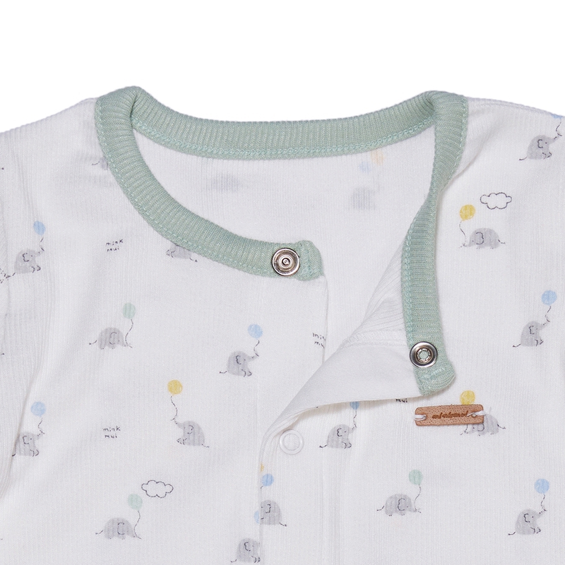 This baby bunting bodysuit is designed with a slim fit and short sleeves, crafted from eco-friendly bamboo fabric that blends natural bamboo and cotton, providing a ribbed and stretchy texture. The cute elephant print and leather label adornments add a touch of style to make it a perfect gift for parents with a baby.