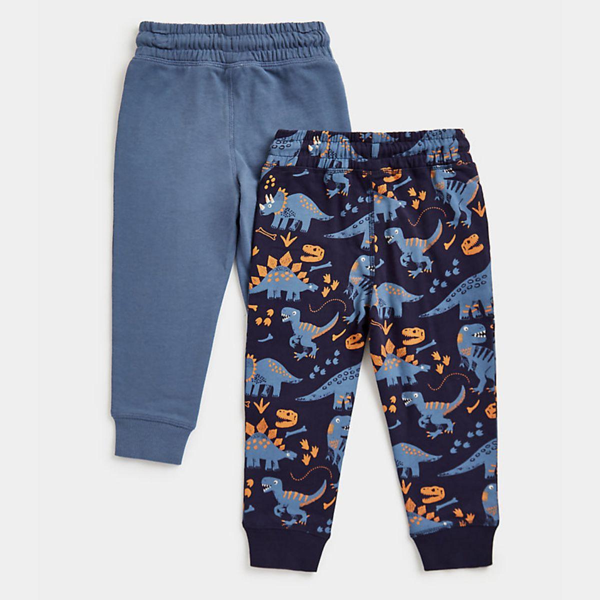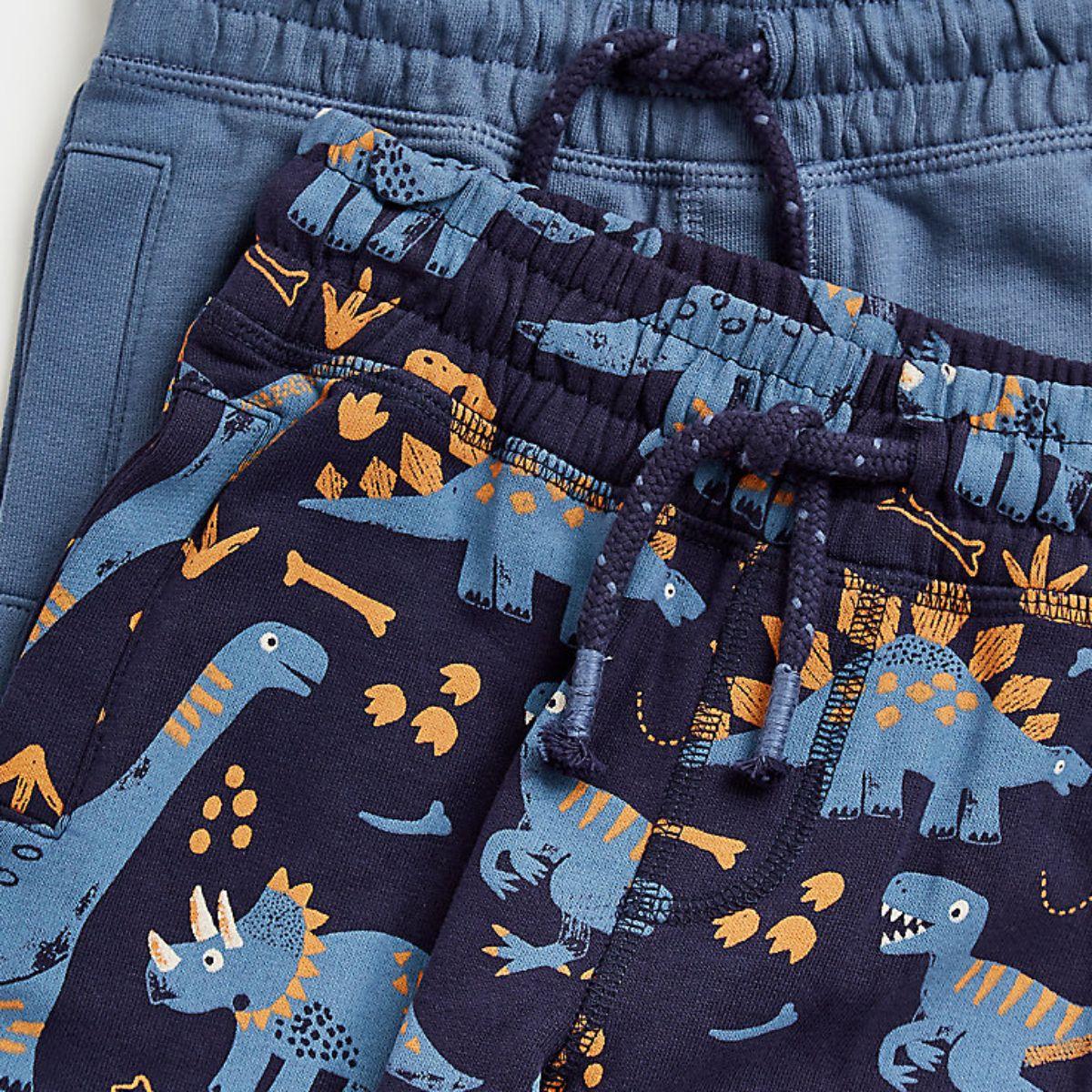 Made for dinosaur lovers, these cotton joggers have wide, stretchy waistbands for easy dressing and all-day comfort. Adjustable drawcords keep them fitting snugly and pockets are on hand to store essentials. In cool blue and navy with pops of orange.