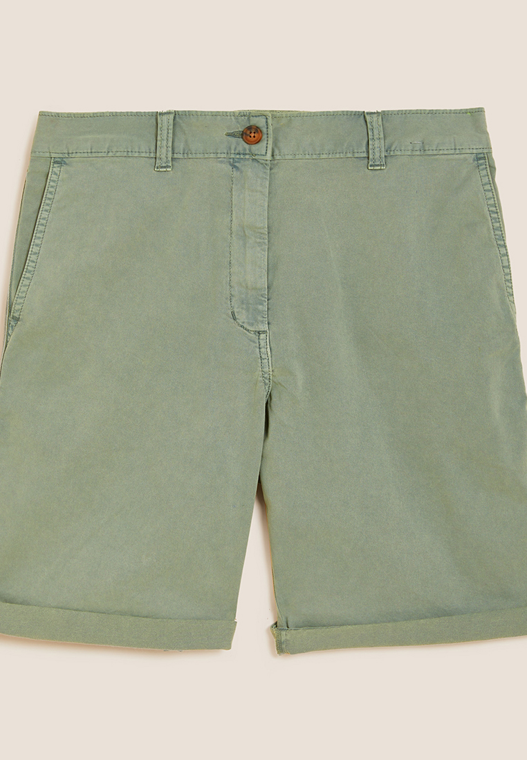 Casual warm weather dressing is a breeze with these soft cotton-rich chino shorts. Flattering high-waisted style, with added stretch for comfort. A rolled hem adds an extra dose of laid-back flair. They're garment-dyed for an authentic, lived-in look. All of the cotton for our clothing is sustainably sourced and always will be.\r M&S Collection: easy-to-wear wardrobe staples that combine classic and contemporary styles.