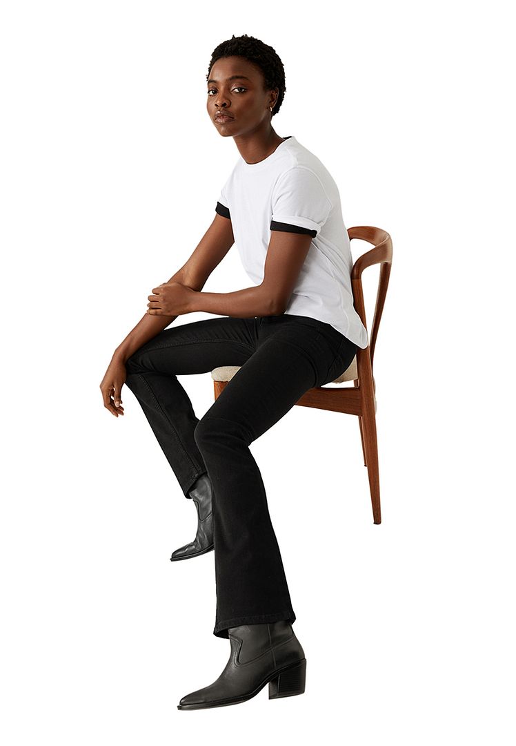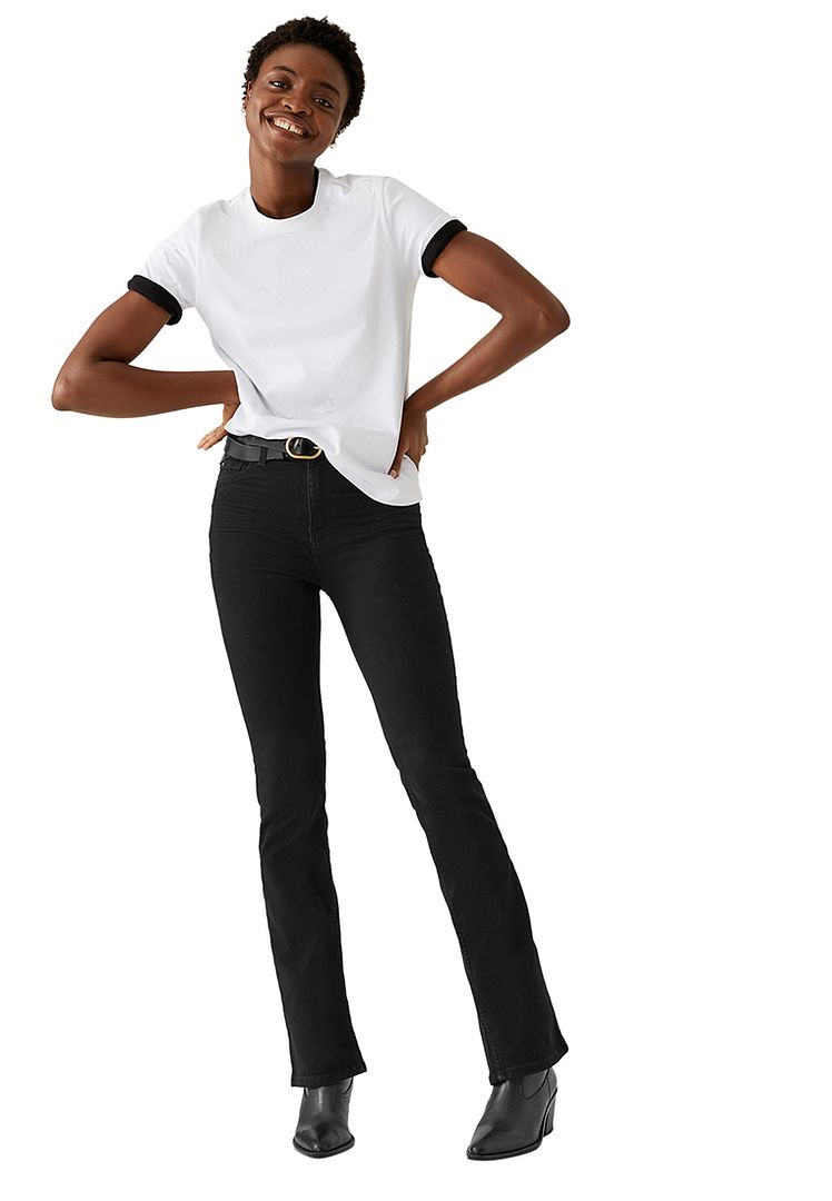 Feel effortlessly chic in our cotton-rich Eva jeans. Slim bootcut shape with a flattering high waist and ankle grazer length. Super stretchy fabric and soft denim ensures our best ever fit and feel. Made with recycled polyester. All M&S denim is made with responsibly sourced cotton and less water.Product style: Bootcut fit, Button and zip fastening, High waisted, Added stretch, All M&S denim is made with responsibly sourced cotton and uses less water, with the aim of lowering the environmental impact of our jeans.Material Composition: 83% cotton, 15% polyester and 2% elastane (exclusive of trimming)Care instructions: Keep away from fire and flames