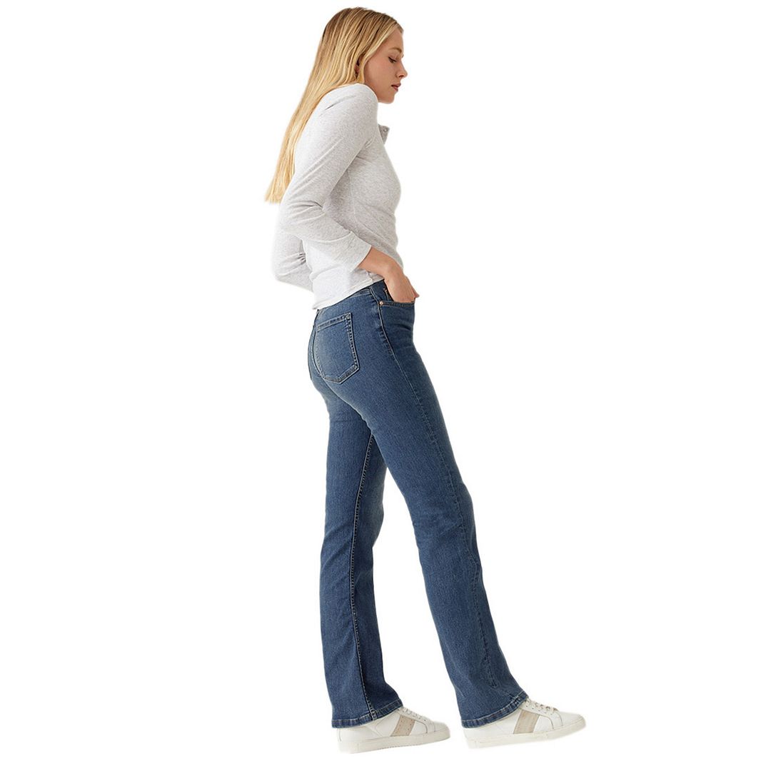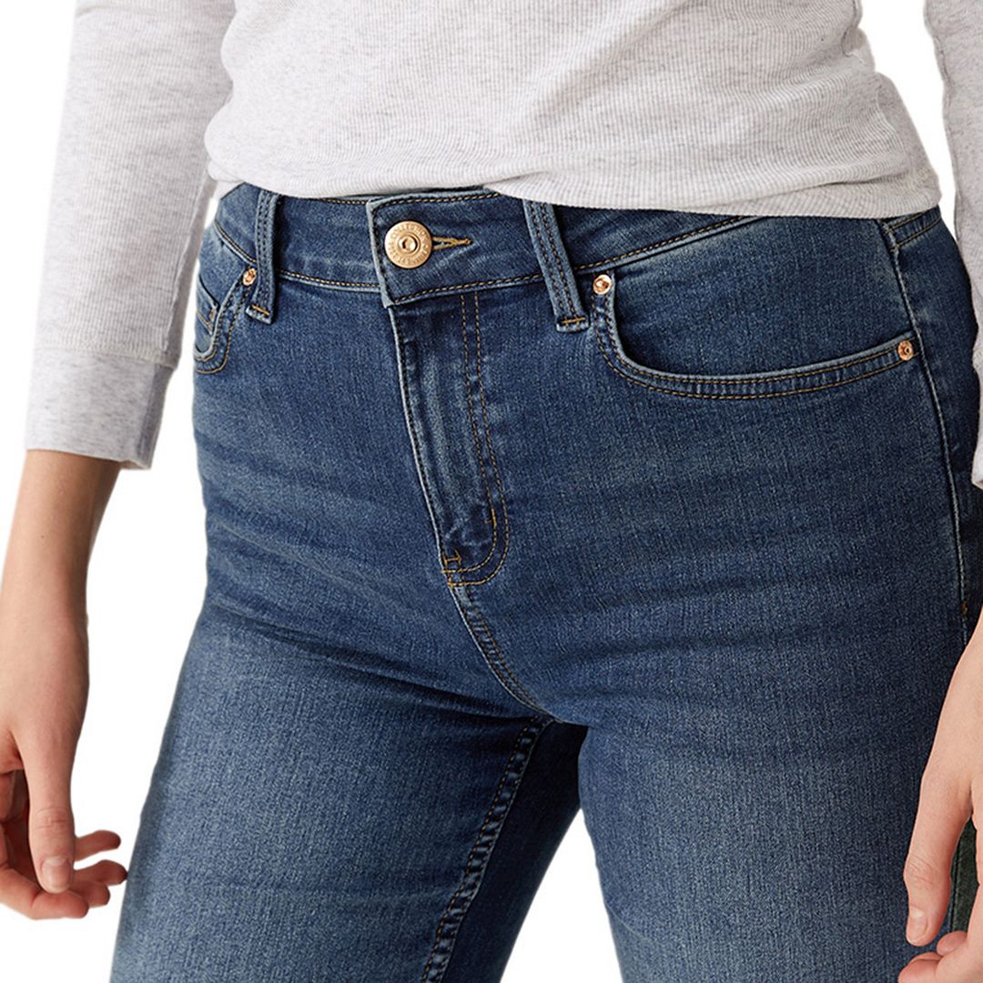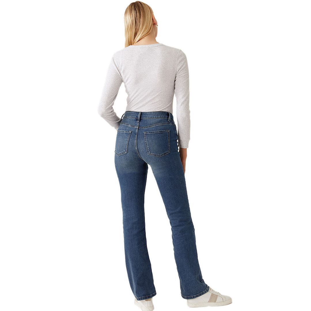 Overview: - Feel effortlessly chic in our cotton-rich Eva jeans - Slim bootcut shape with a flattering high waist and ankle grazer length - Super stretchy fabric and soft denim ensures our best ever fit and feel - Made with recycled polyester - All M&S denim is made with responsibly sourced cotton and less water. Product Style / Style number:T57/7567 Model Display / Item Details: -Model Height: 5ft 10"/179cm -Model is wearing size: 8 Fit & Style: -Bootcut fit -Button and zip fastening -High waisted -Added stretch -All M&S denim is made with responsibly sourced cotton and uses less water, with the aim of lowering the environmental impact of our jeans. Material Composition / Fabric Details: - 83% cotton, 15% polyester and 2% elastane (exclusive of trimmings) Fabric Care Guide / Washing Instructions: -Machine washable