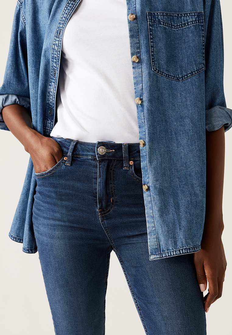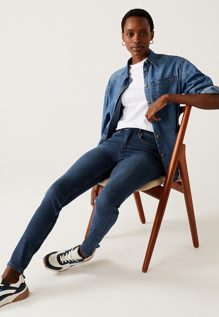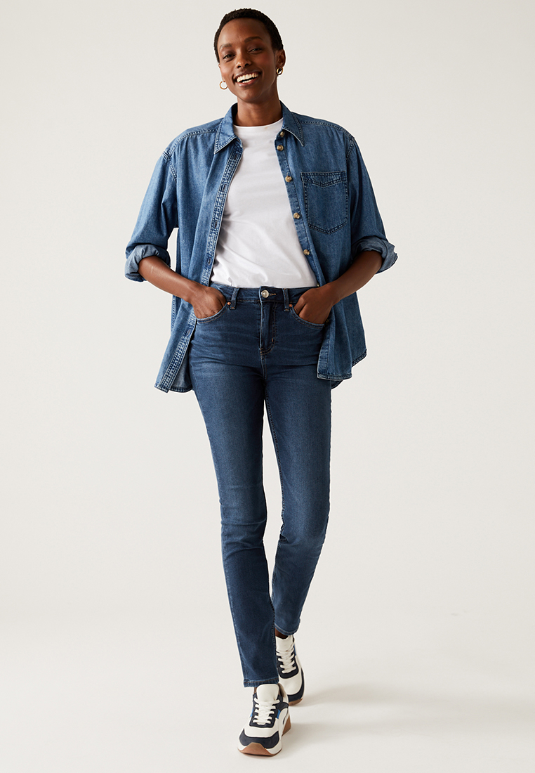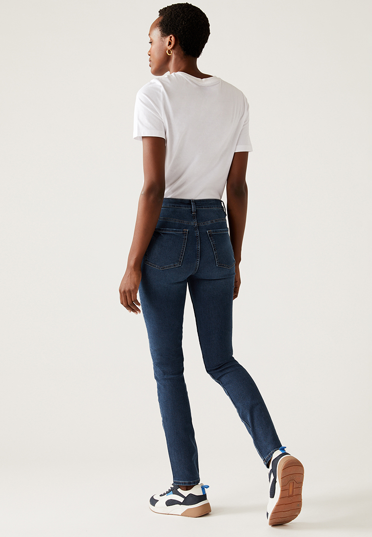 These everyday jeans are crafted from cotton-rich denim with added stretch to bring you our best ever fit. Slim legs with a mid-rise waist and flattering ankle-grazer length. Denim feels gorgeously soft against your skin. All M&S denim is made with responsibly sourced cotton and less water. Made with recycled polyester. M&S Collection: easy-to-wear wardrobe staples that combine classic and contemporary styles.