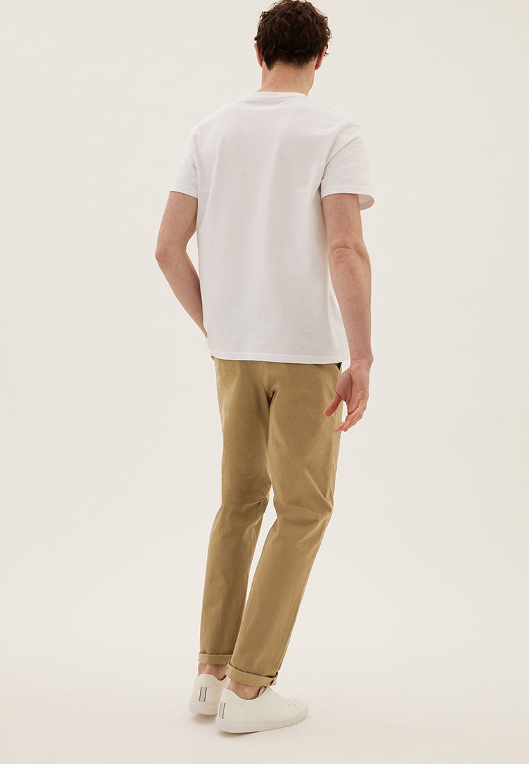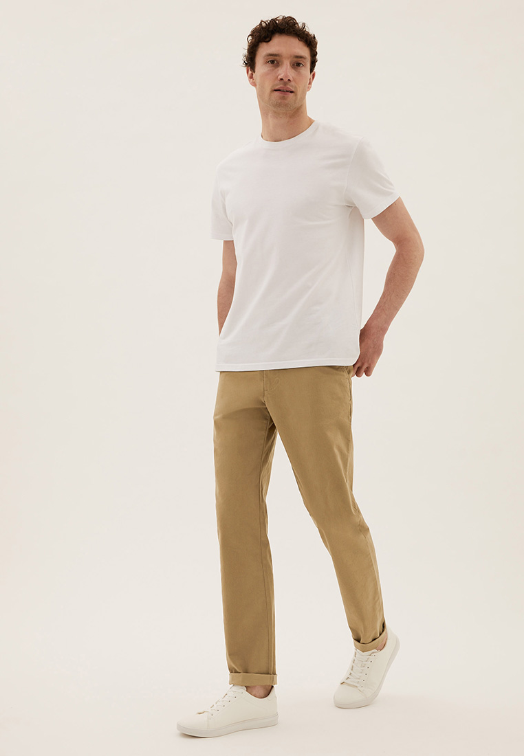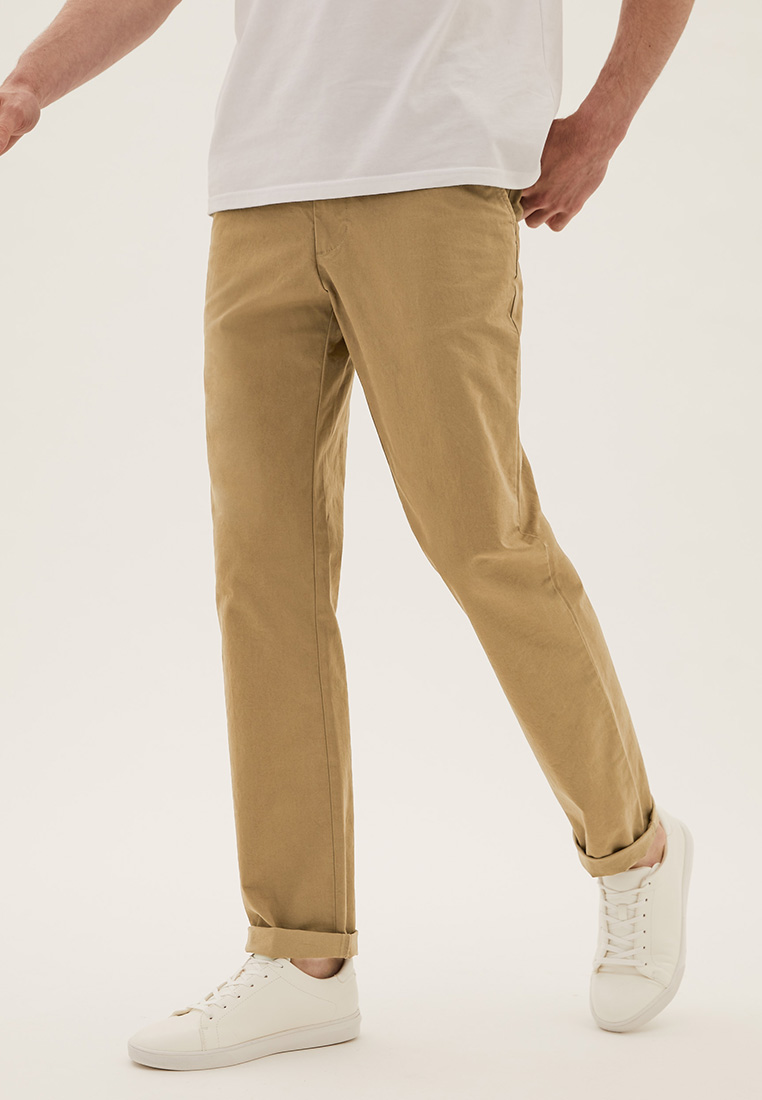 - These men's chinos are a sleek pick for the season, the ideal pair to get your smart casual outfits looking their best. Made from a cotton rich fabric for comfort and style all in one, these stretch chinos come in our new regular fit give a flattering finish while Active Waist ensures a great fit that moves with you. All of the cotton for our clothing is sustainably sourced and always will be.