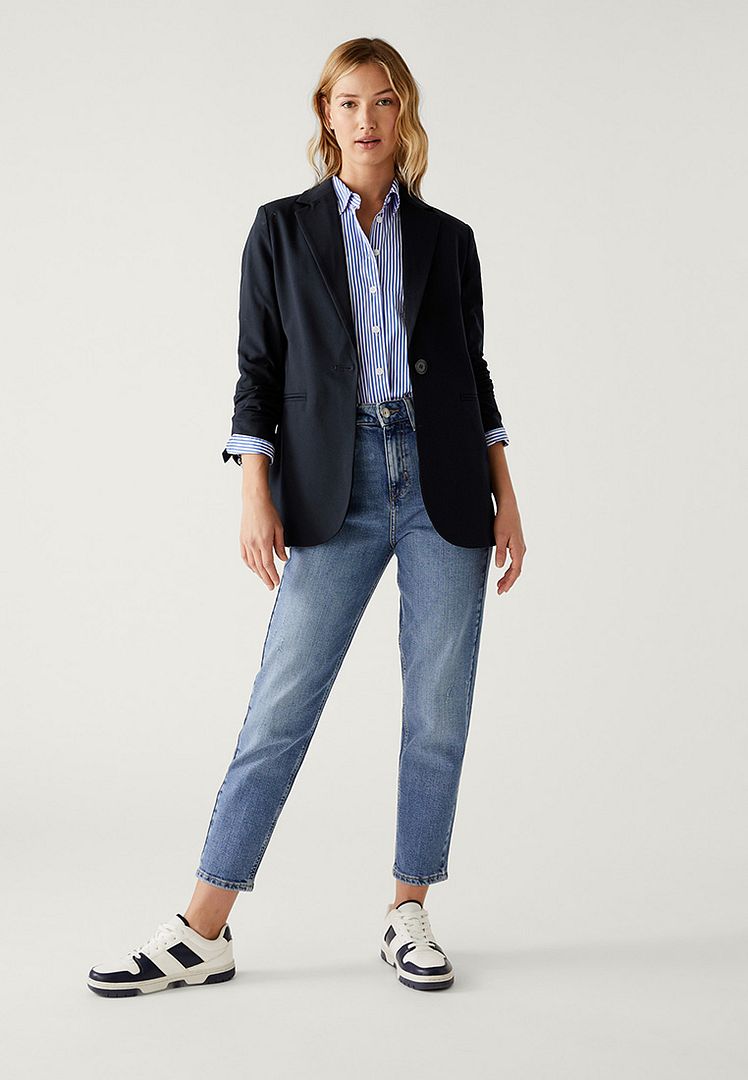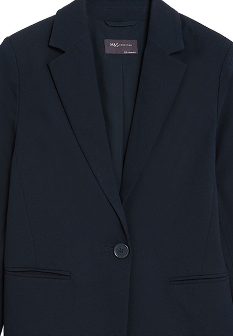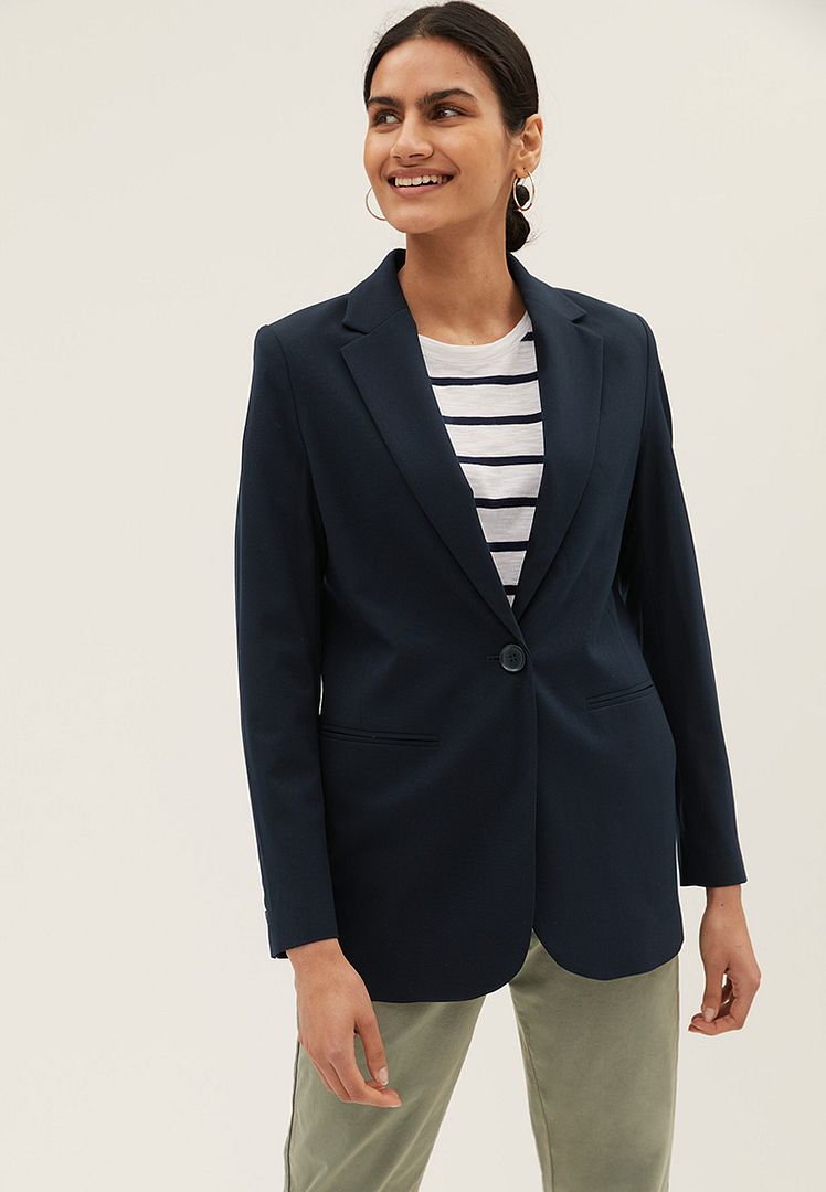 No wardrobe is complete without a smart single breasted blazer. This one is cut in a roomy relaxed fit, with a neat lapel collar and two front felt pockets. Fully lined, with added stretch for comfort.\r M&S Collection: easy-to-wear wardrobe staples that combine classic and contemporary styles.