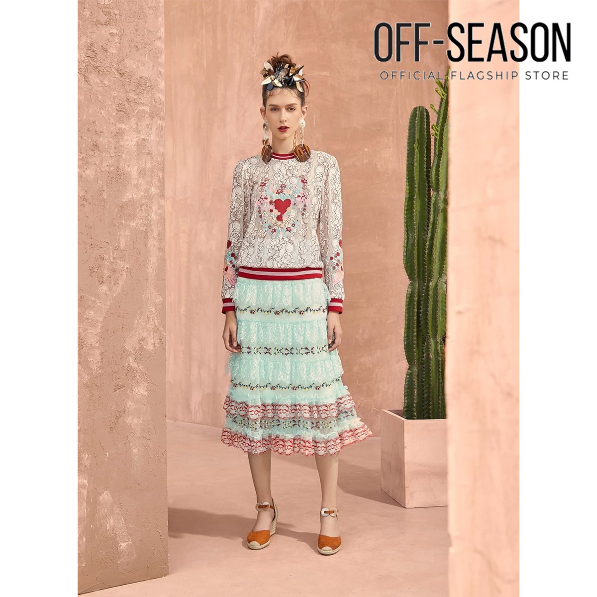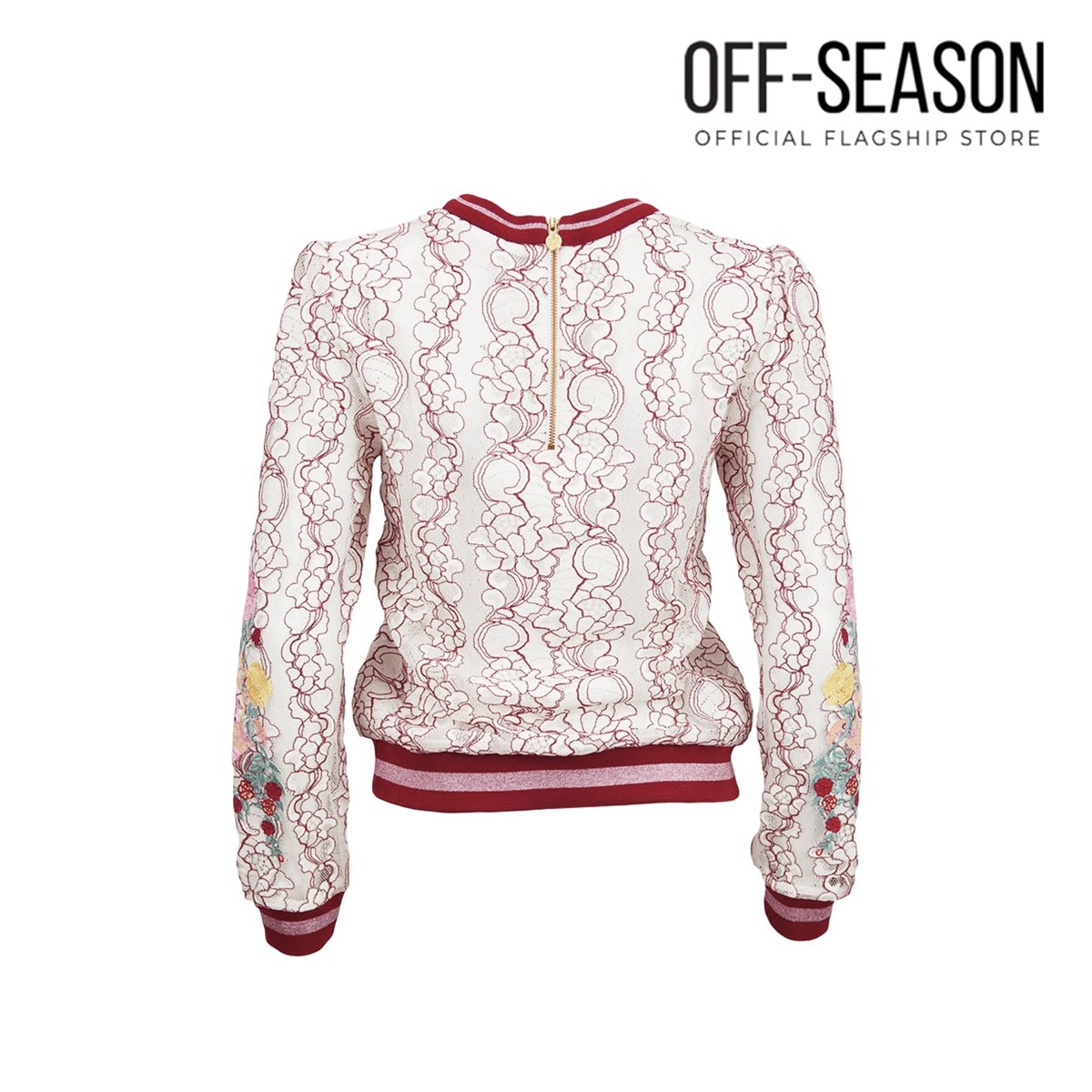 Disaya Spring / Summer 2019 Embroidered lace top Long sleeves Elastic wrists and waistband Regular fit Care : Dry clean only Material : SHELL: 40% NYLON, 40% POLYESTER, 20% COTTON Colour: RED Origin: Thailand