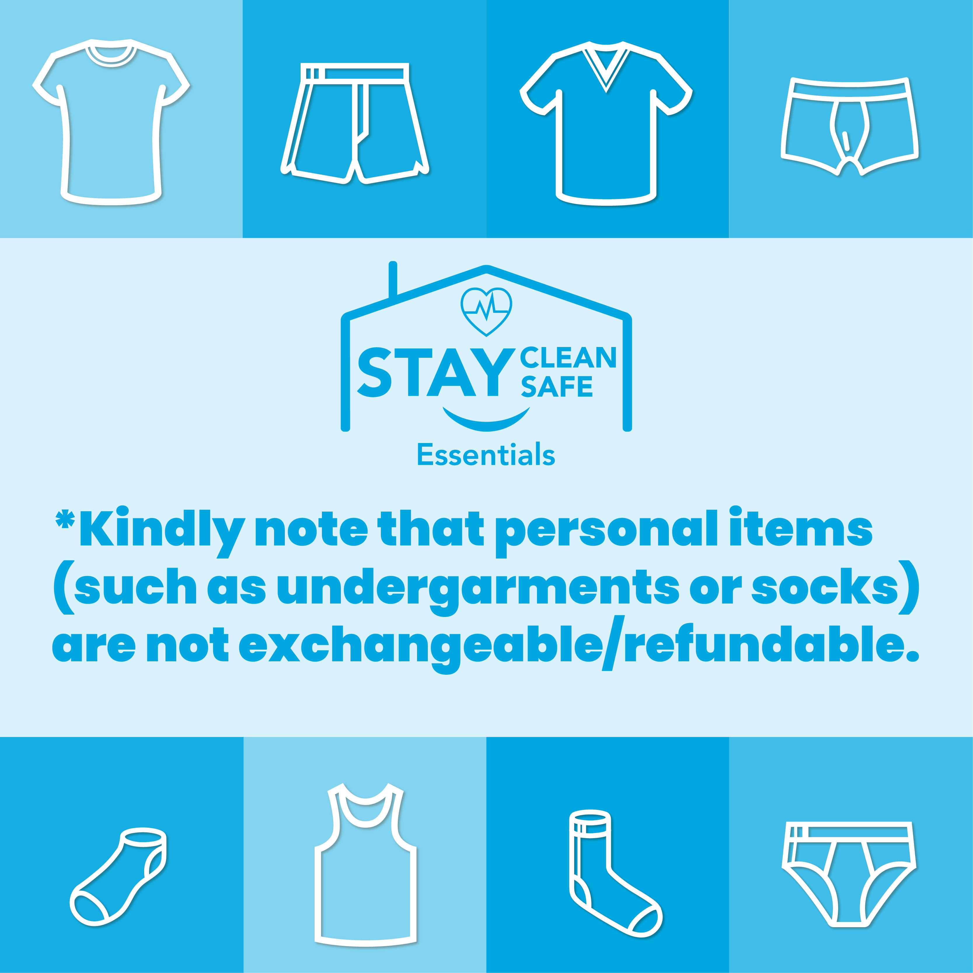 *Kindly note that personal items (such as essential, undergarments or socks) are not exchangeable/refundable.