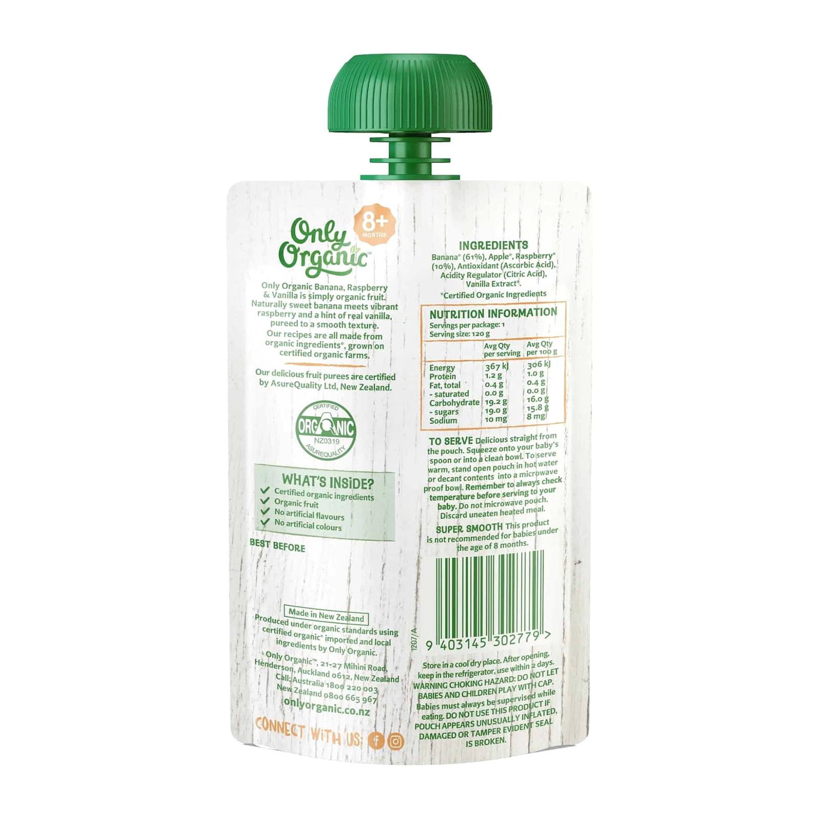 Only Organic Banana Raspberry & Vanilla Pouch 120G - From 8 Months Jar|,|