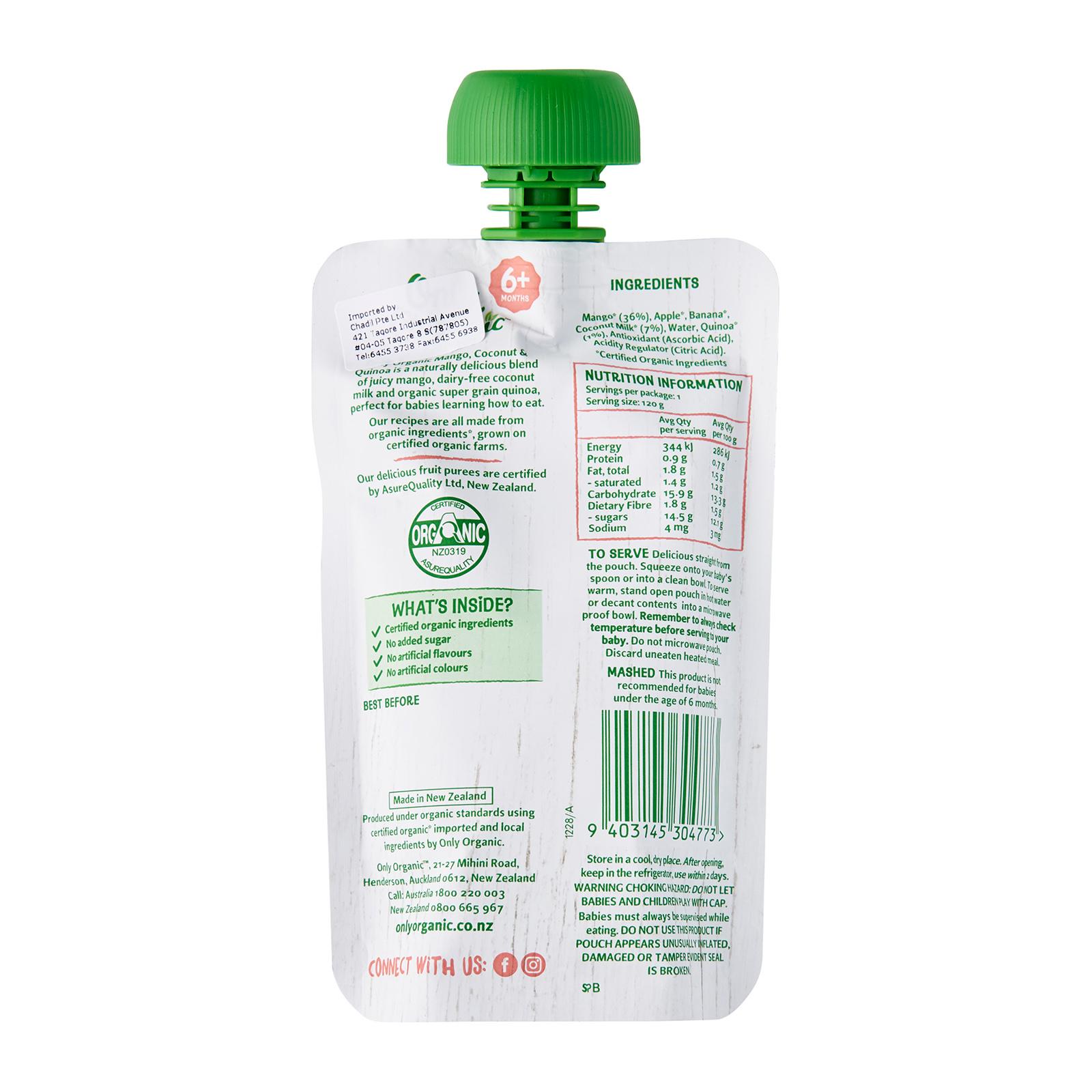 Only Organic Mango Coconut & Quinoa Pouch 120G - Second Foods For Babies - From 6 Months Jar|,|