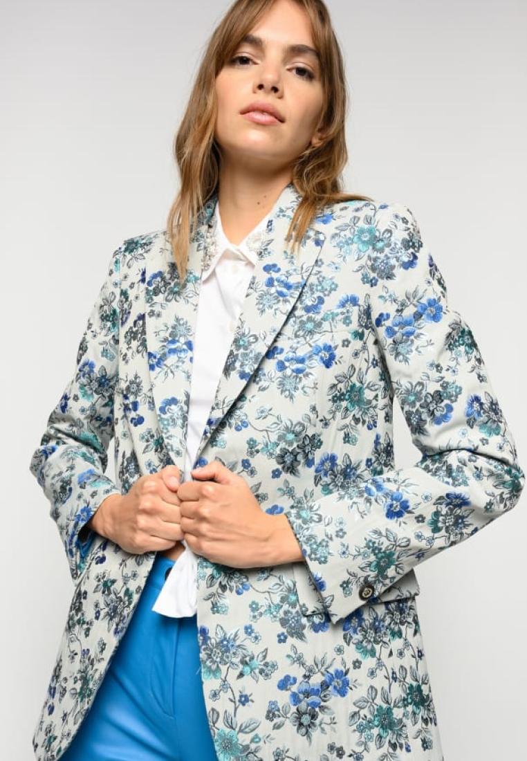 Blazer in all-over floral pattern brocade fabric featuring a lapel collar, long sleeves, pockets with appliquéd flap on the sides. Lined. Single-breasted fastening with single button. Model is 179cm tall and wears a size 40..