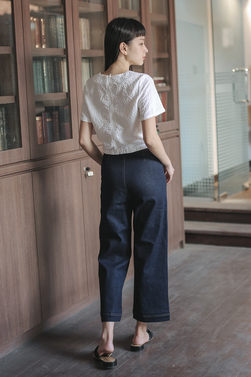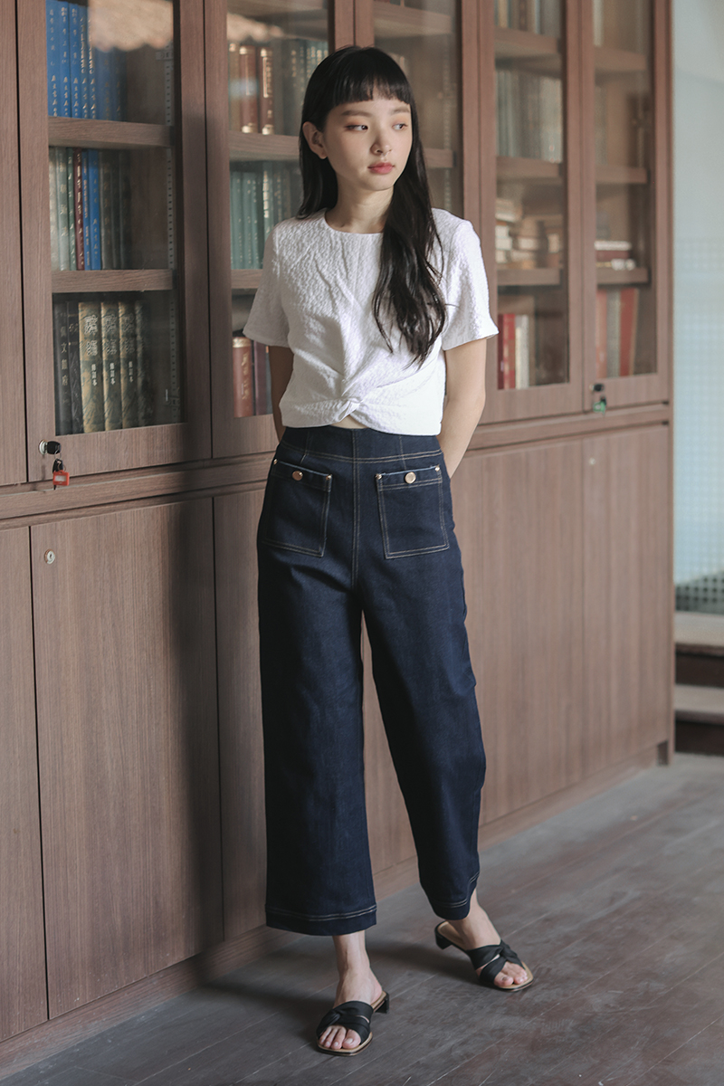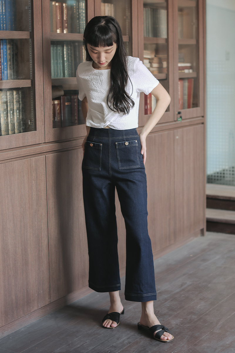 A pair of denim jeans never fails! This is better without the fly front zip and comes with functional front patch pockets embellished with gold snap buttons!