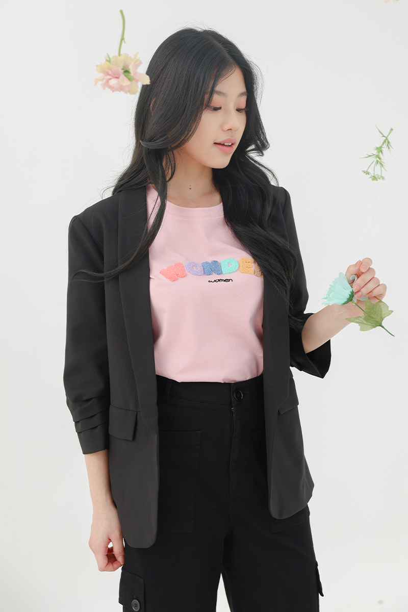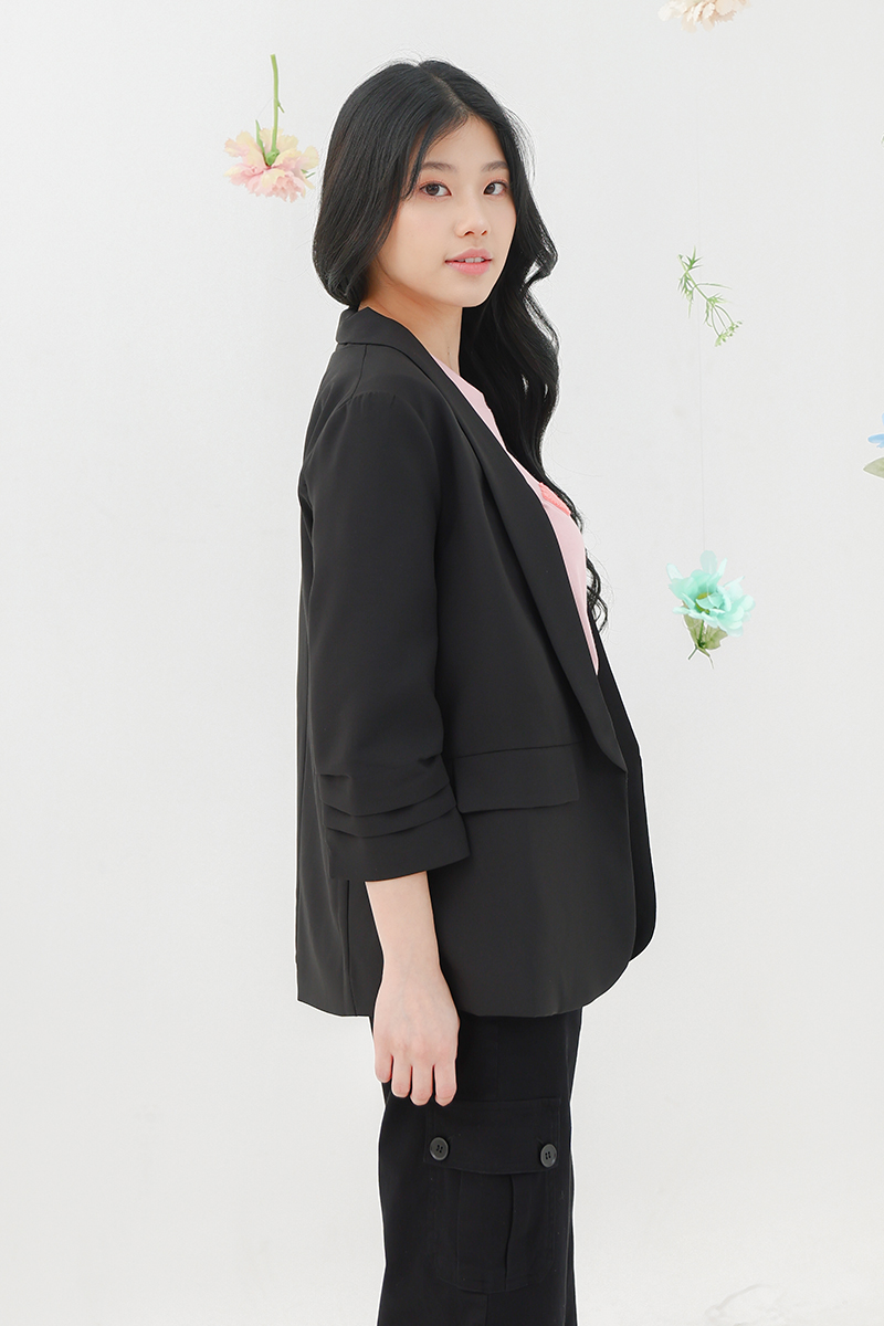 Step up your style game with Adelia! The sleeves of the blazer are pleated which is suited for casual and formal occasions, while the lack of buttons creates a clean and streamlined look. Adelia is perfect for pairing with a variety of outfits, from jeans and a t-shirt for a casual look, to a dress or skirt for a more formal occasion.