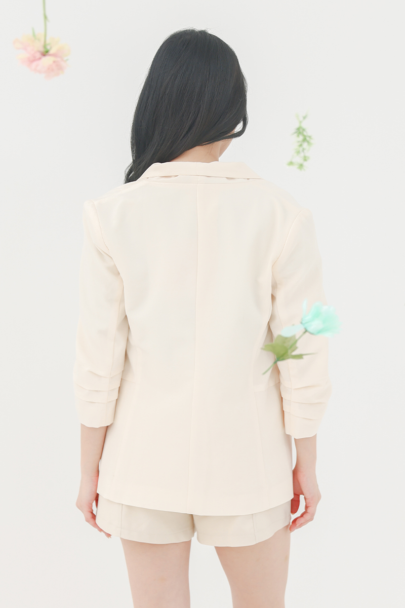 Step up your style game with Adelia! The sleeves of the blazer are pleated which is suited for casual and formal occasions, while the lack of buttons creates a clean and streamlined look. Adelia is perfect for pairing with a variety of outfits, from jeans and a t-shirt for a casual look, to a dress or skirt for a more formal occasion.
