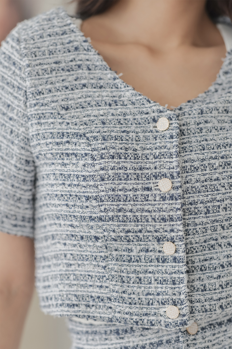 It’s time to rotate your wardrobe back to classics - Tweed. Slay that effortless look in a snap. Style this top with Hello Tweed High Waisted Shorts or any bottoms. Crop fit. V-neckline.