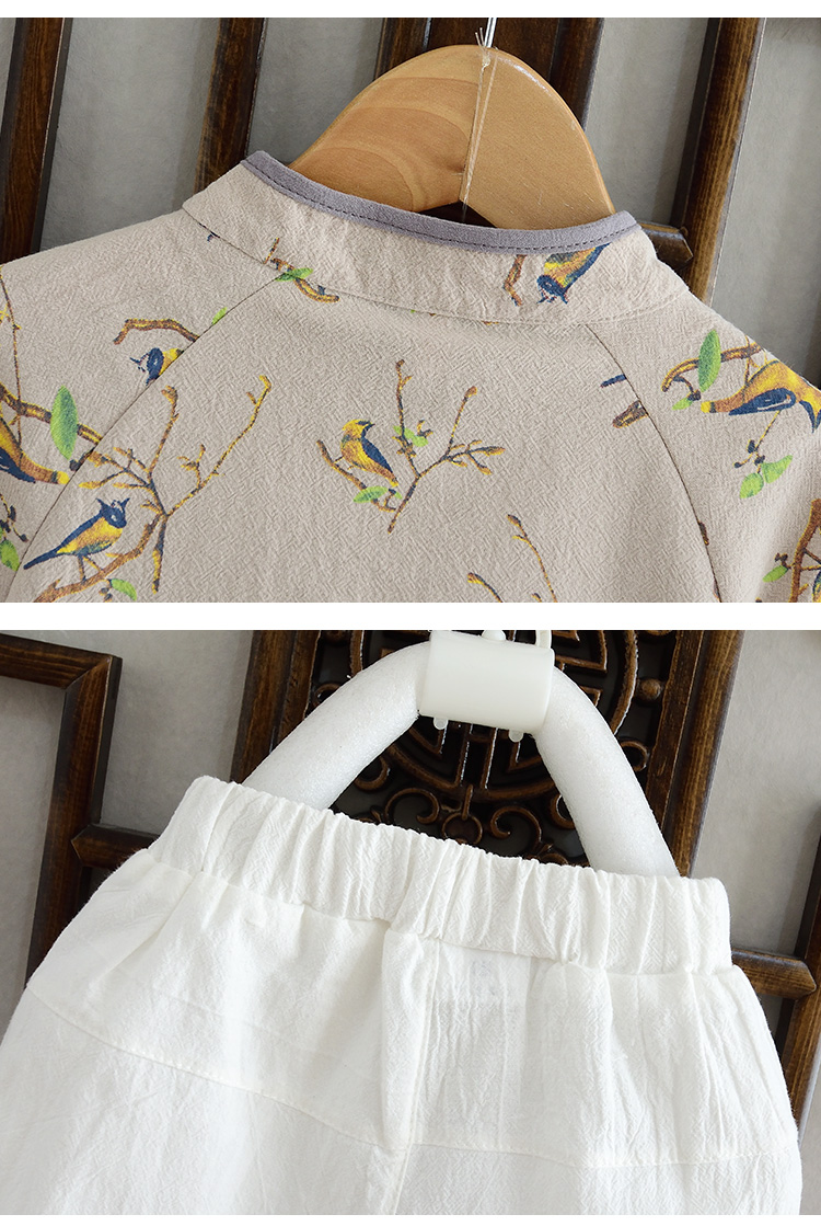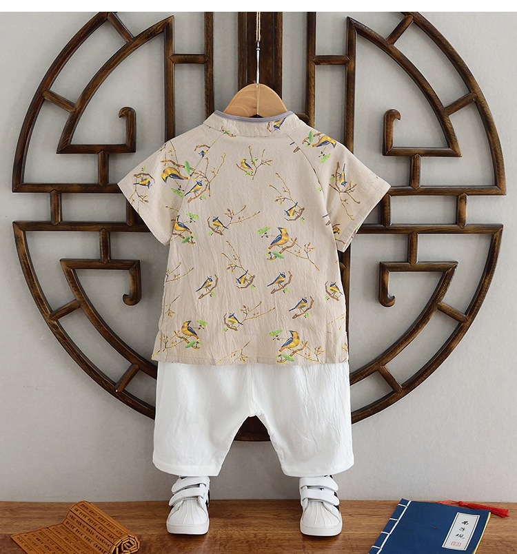 [SG Ready Stock] TZ052 Toddler Boys Traditional Mandarin Collar Birds Kungfu Shirt Top & Pants Set [Little Gems]|,|