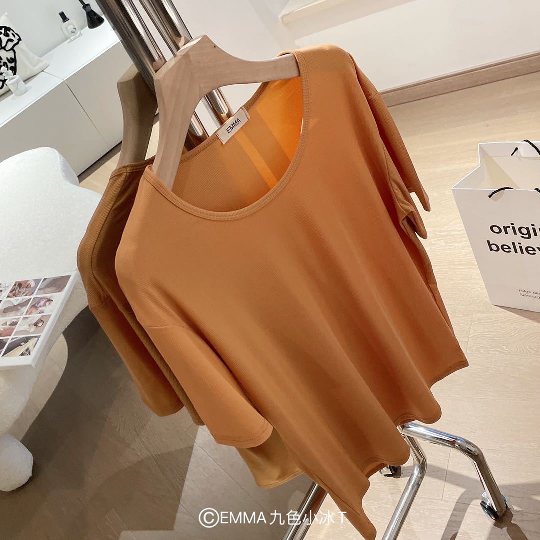 SG SELLER Pure Color Short sleeved Round Neck Soft Cool Thin Casual many kind of colors Women T Shirt Ice Silk Cool Free size Large size|,|