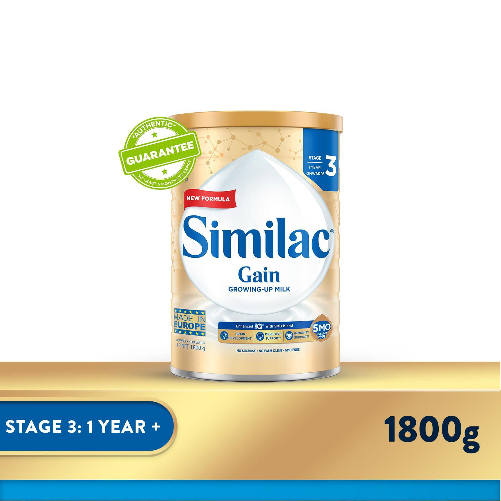 Similac Gain 5MO Stage 3 Growing-Up Baby Milk Powder Formula 1.8 KG (1 Year Onwards)|,|