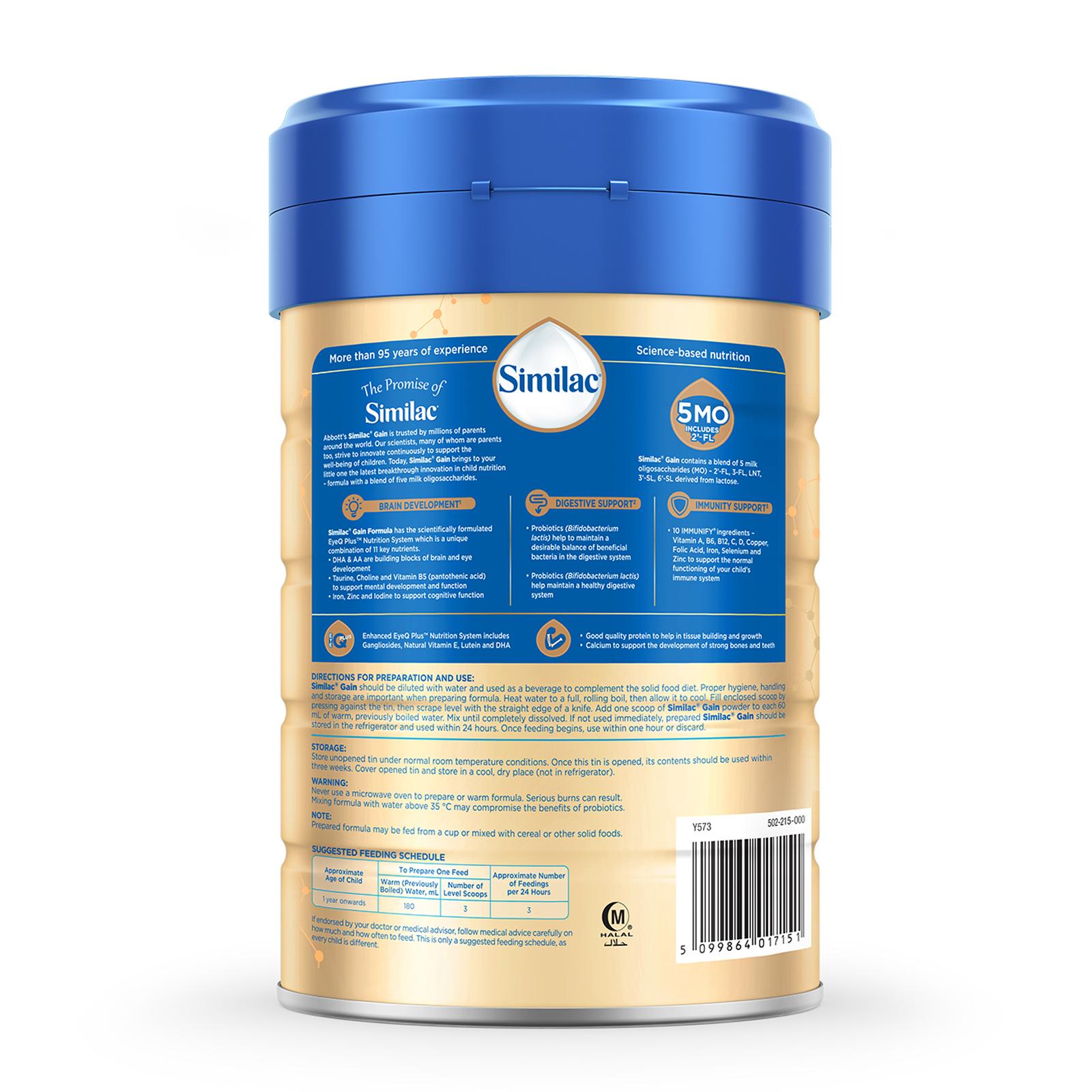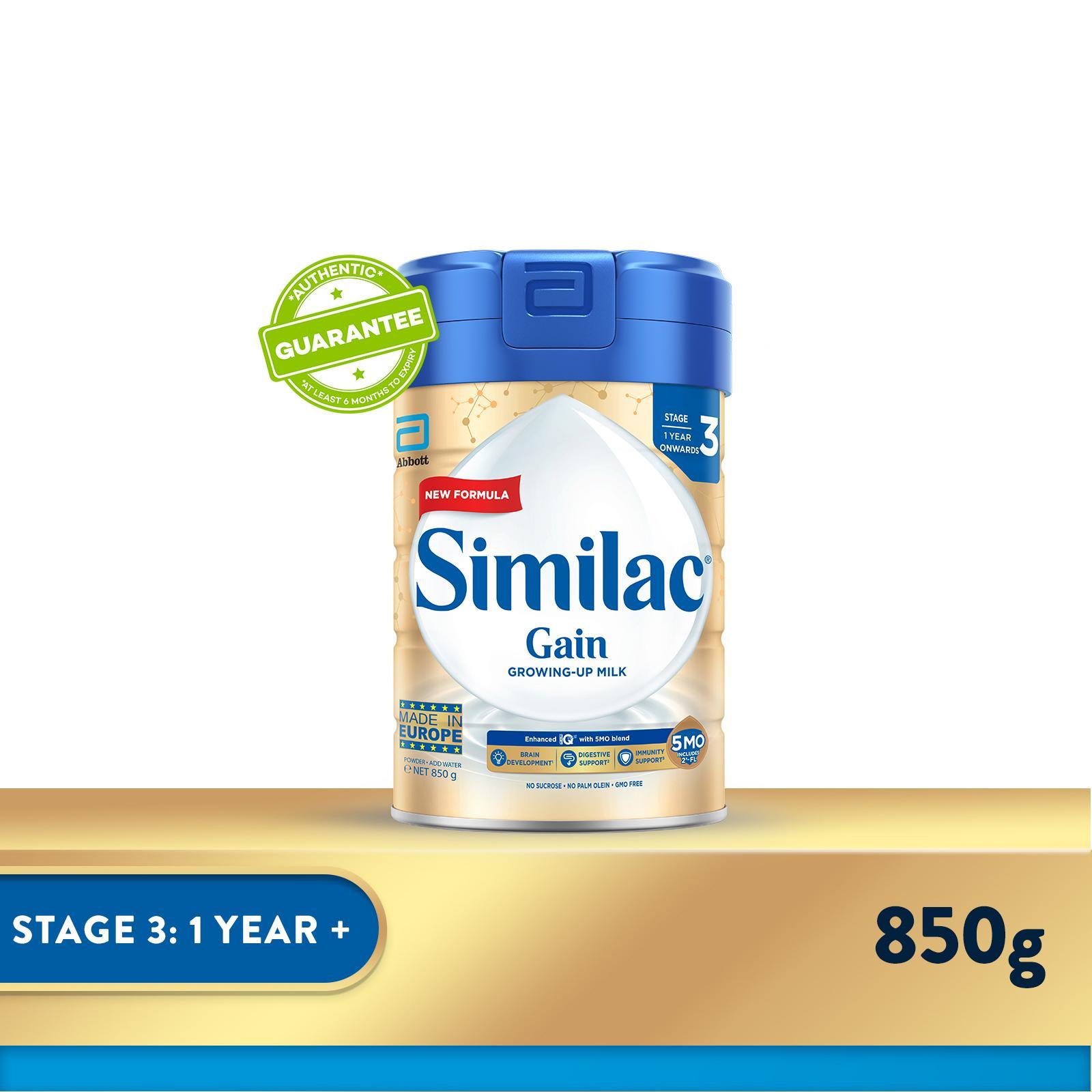 Similac Gain 5MO Stage 3 Growing-Up Baby Milk Powder Formula 850 G (1 Year Onwards)|,|