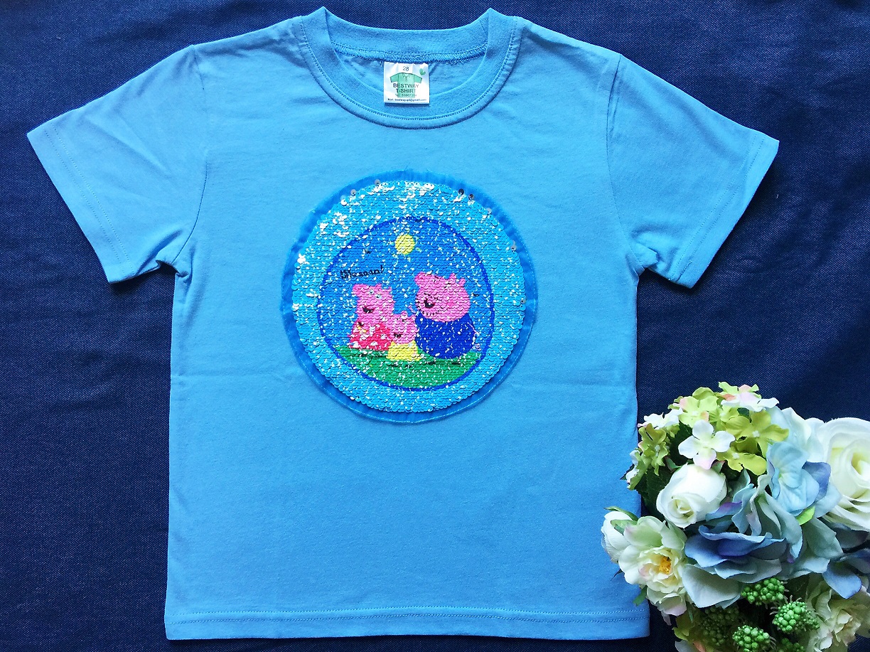 -reversible sequinned embroidery on chest, different design on both side, it's funny for children 可翻转亮片绣花 两面不同图案 孩子的最爱