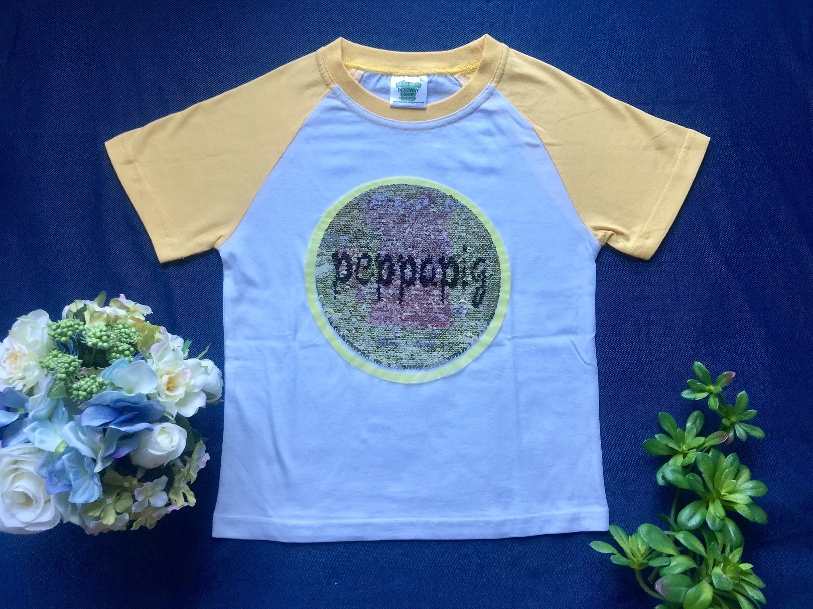 t shirt cotton reversible sequin embroidery kids unisex boy girl 纯棉T恤可翻转亮片|,|