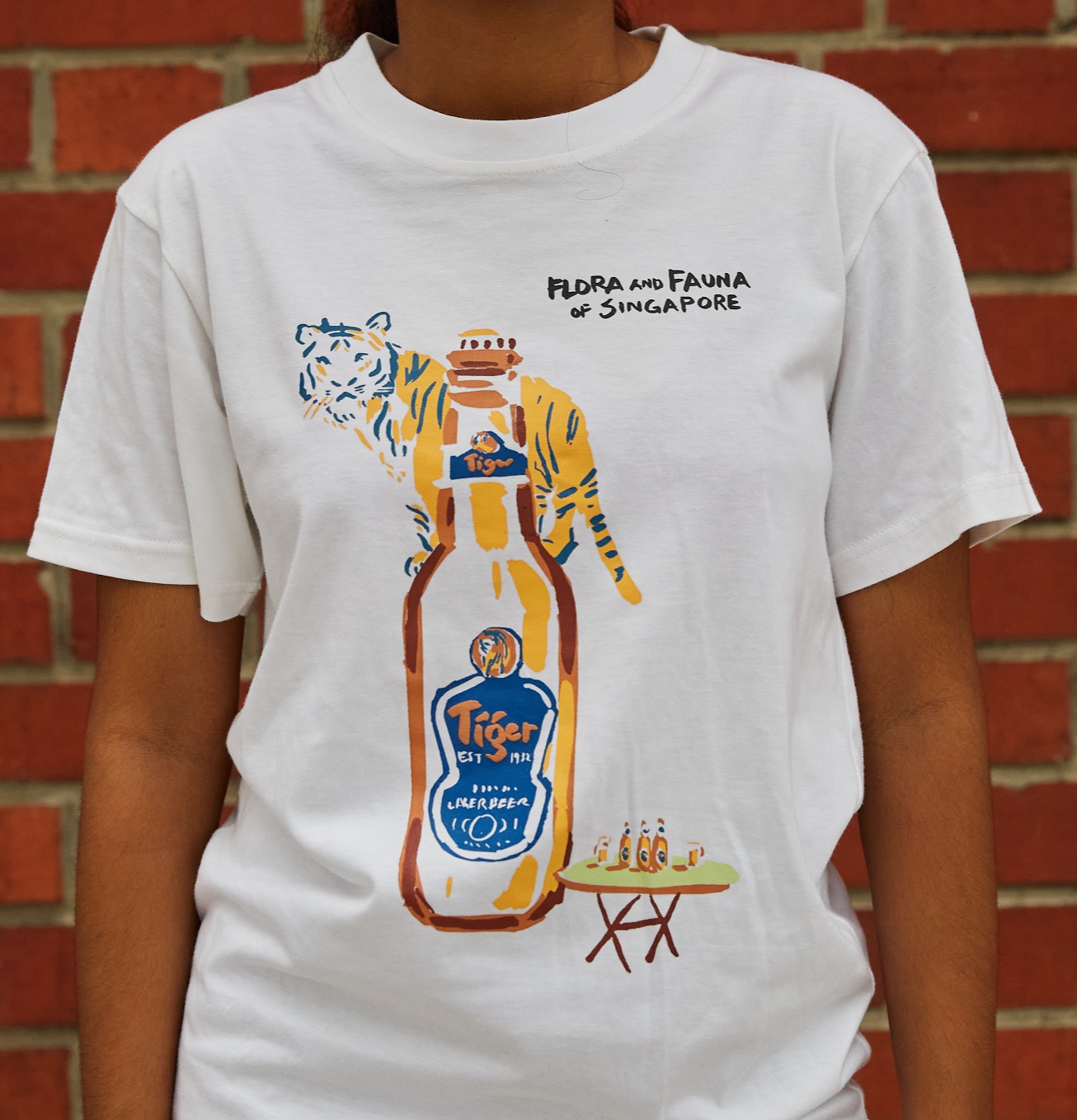 Inspiration: The ubiquitous Tiger Beer advertisements are found all over Singapore and Tiger Beer is drunk in every KopiTiam (food center) in Singapore, it is well loved by both locals and tourists. The majestic Malayan Tiger is native to Singapore and a famous symbol.
